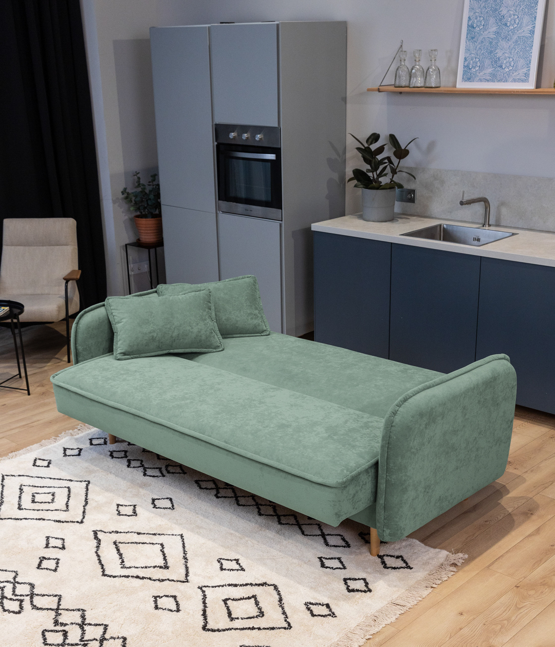 Прямой диван Линдгрен идеально вписывается в современные интерьеры, придавая пространству легкость и не перегружая его. Сочетая в себе лаконичный и базовый дизайн, диван органично впишется в интерьер почти любого стиля, а наличие просторного спального места делает его практичным как для отдыха, так и для сна.