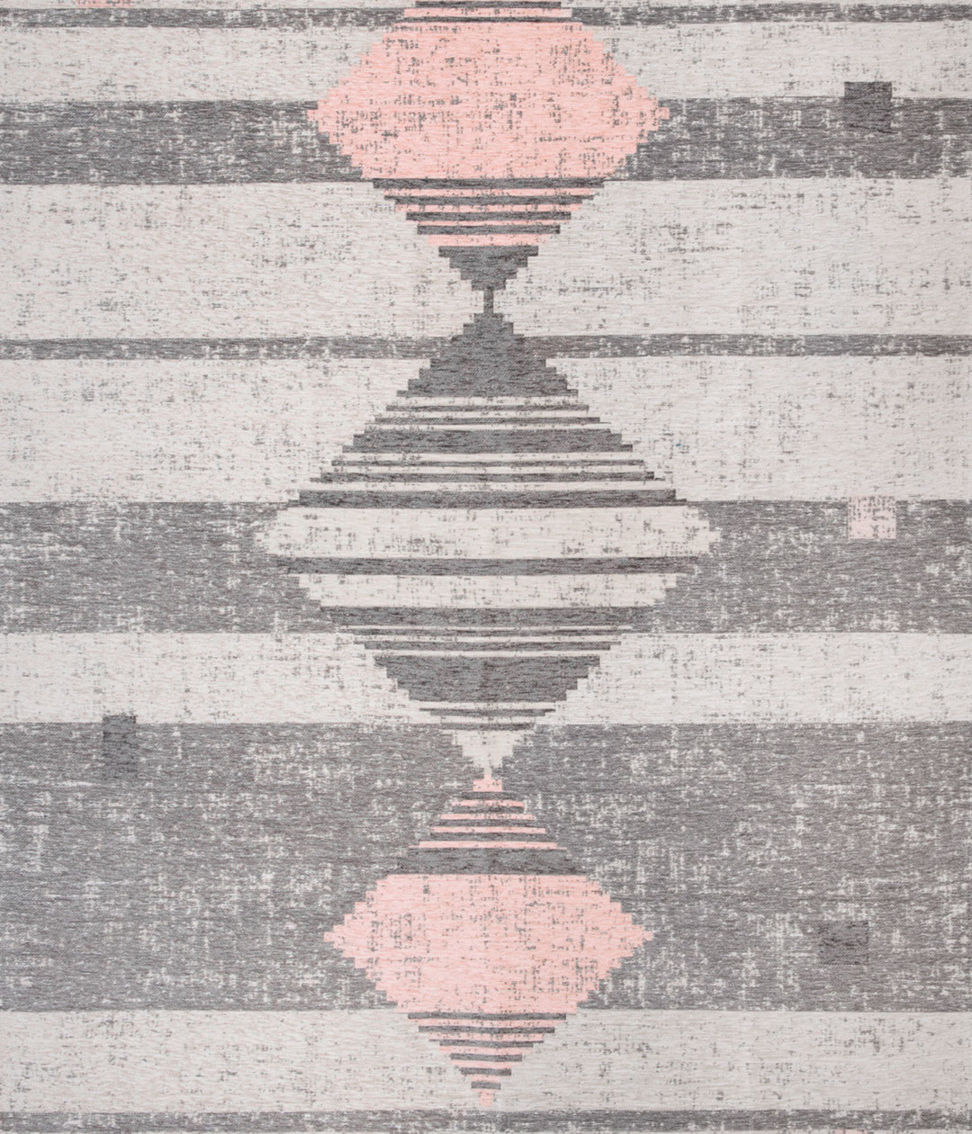 Геометрия в текстиле – один из последних трендов в мире дизайна. Ковер LINE CARAVAN прекрасно сочетает в себе эту тенденцию с этническими нотками. Неброские цвета выступают в комбинации с нестандартным рисунком. Такое сочетание позволяет ковру органично смотреться в различных стилистических решениях. Цветовая гамма ковра приглушенная и изящная: светло-серые оттенки в сочетании с цветом «айвори» дополнены акцентом в виде нежно-розового ромба.