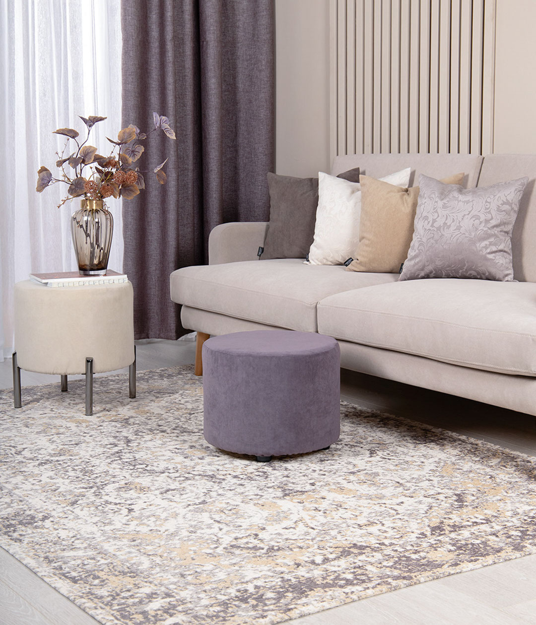 Ковер LINE NOCTURNE это новое прочтение классического орнамента. Центральный «Дамаск» обрамленный по периметру и придающее спокойствие сочетание теплого бежевого и серо-фиолетового цветов прекрасно гармонируют между собой. Эффект старины придает ковру еще больше индивидуальности и загадочности.