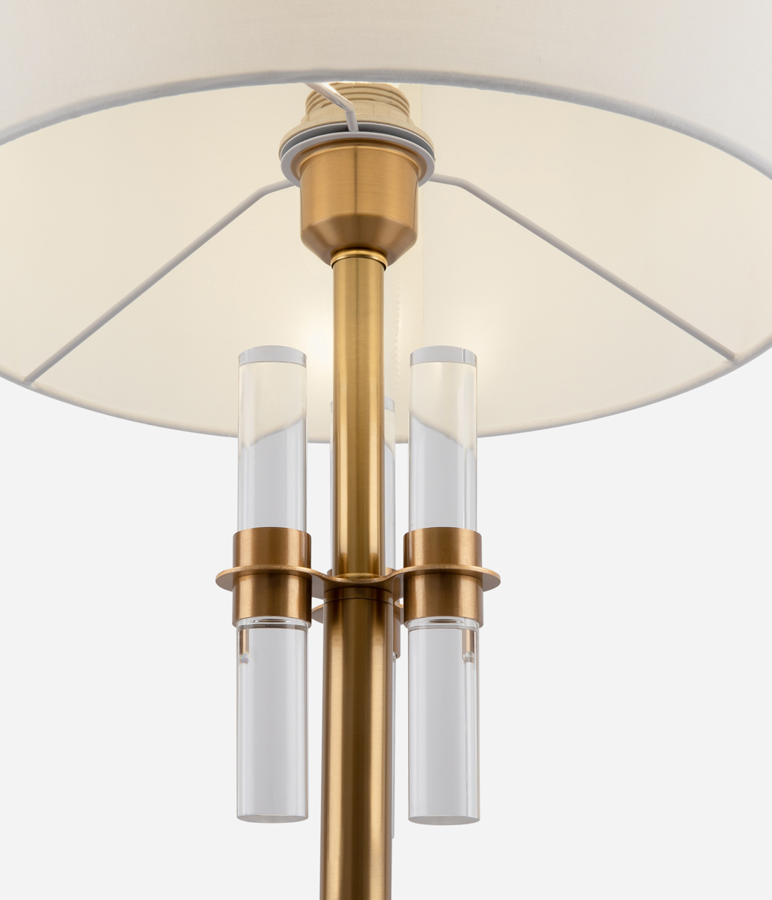 Торшер Lino – это элегантная интерпретация современной классики. Металлическая арматура светильника окрашена в благородный оттенок латуни. Симметричность элементов создает легкий образ, а декор – прозрачные акриловые трубки – подчеркивает невесомость композиции. Комбинация фактур и материалов – модный тренд, добавляющий освещаемому пространству объема и глубины.