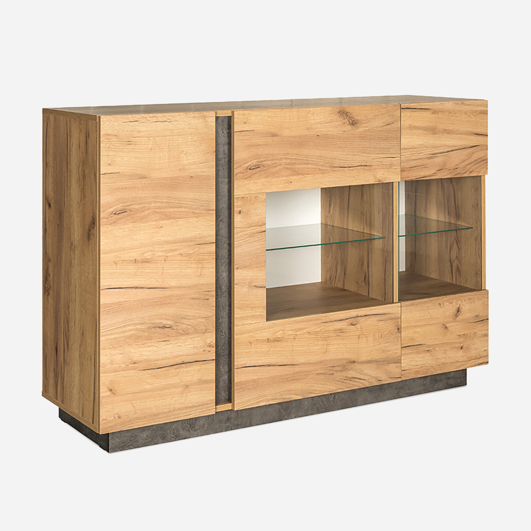Трендовые цвета фасадов в сочетании с крупной текстурой древесных волокон на каркасе делают комод Livorno стильным элементом гостиной или спальни.