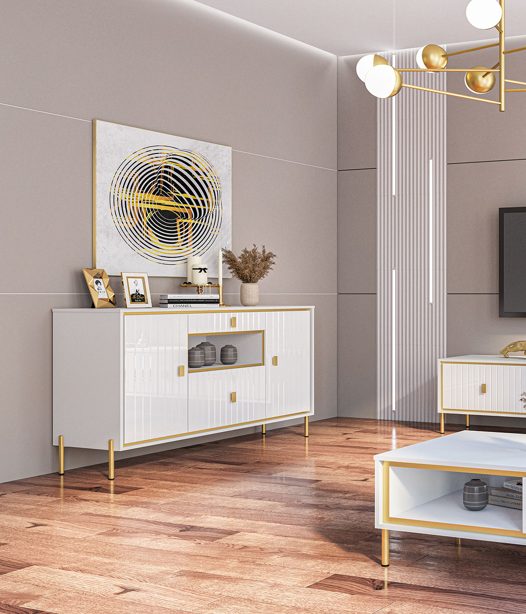 Тумба Люксор с полками и ящиками украсит любое помещение в стилях сканди, эко-минимализм и других направлений. Модуль отвечает всем современным требованиям к практичности и функциональности, а цветовая палитра придает помещению уюта и свежести.