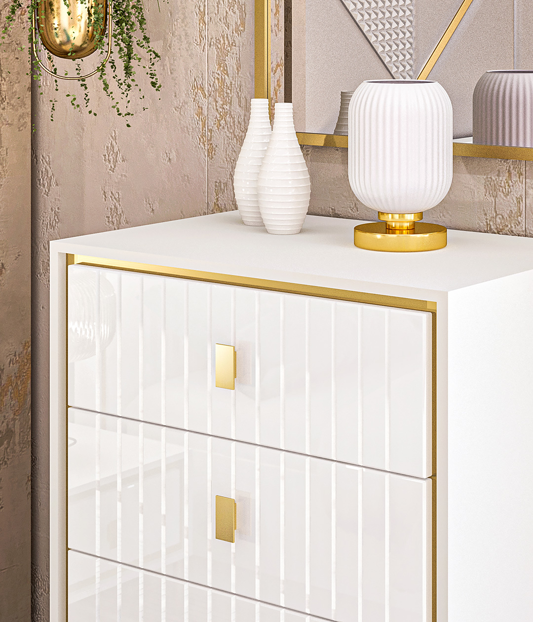 Комод Люксор станет отличным дополнением системы хранения в спальне, гостиной или прихожей. На небольших ящиках удобно разместить подручные предметы, или аксессуары.
