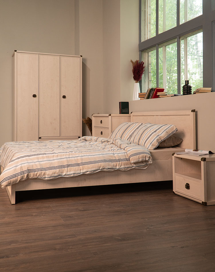 Наполняет интерьер комнаты светом и визуально расширяет пространство помещение, а цвет дерева создает комфортную и уютную атмосферу.