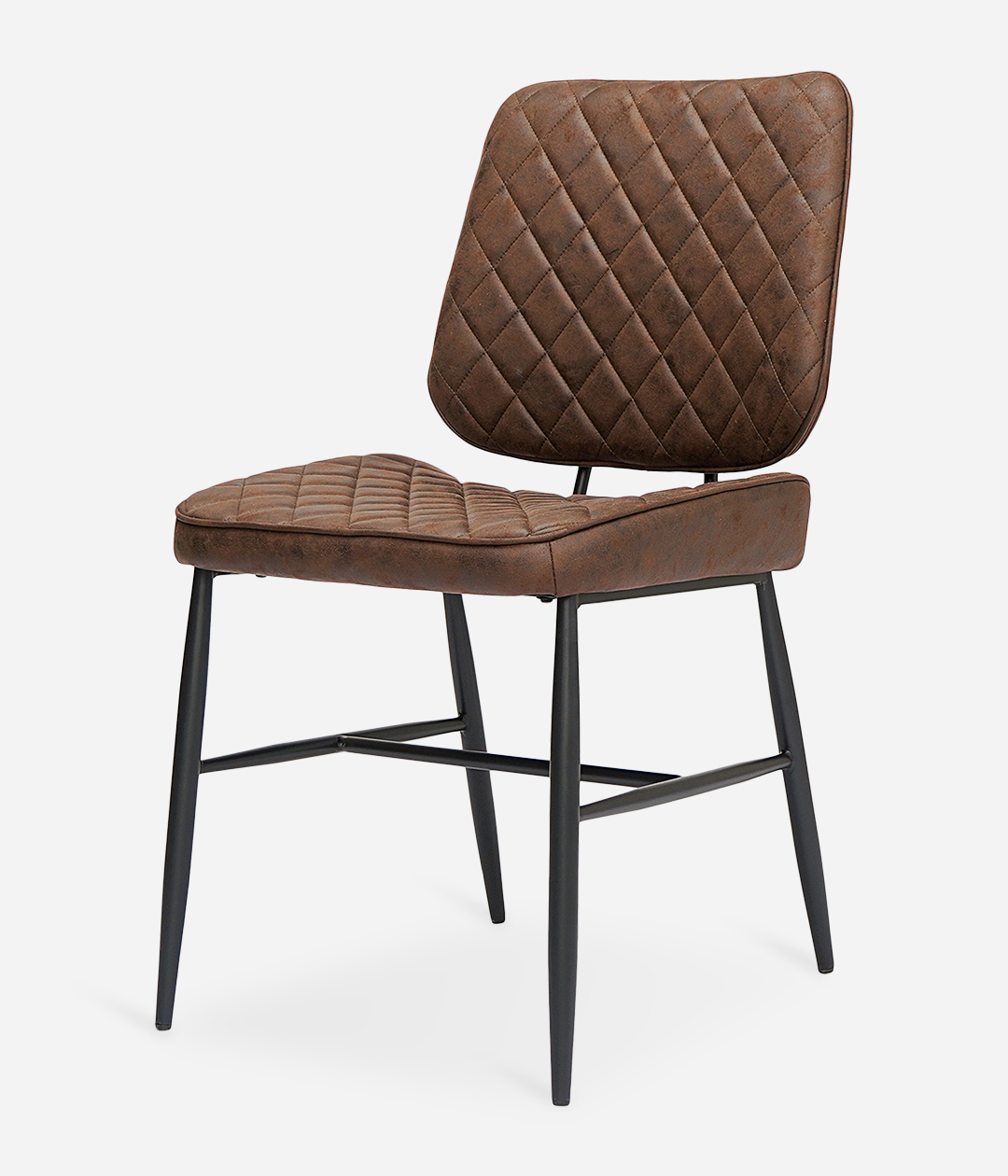 Элегантный, простой стул с современной формой, представляет совершенно новое качество и функциональность. Сиденье стула обито эко-кожей с характерным рисунком треугольников. Каркас 4 металлические черные ножки.