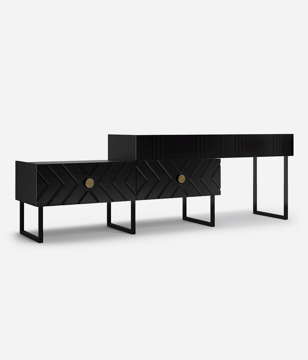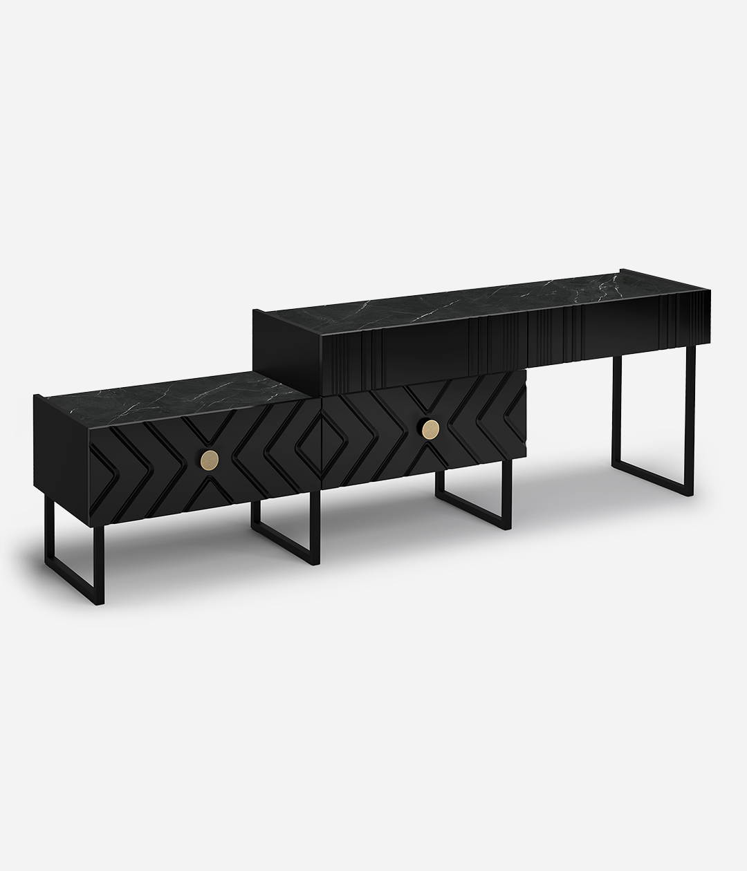 ТВ - тумба «Марсель» имеет необычную и очень привлекательную конструкцию, составные части расположены в виде ступенчатой композиции. На каждом уровне присутствует два выдвижных ящика.