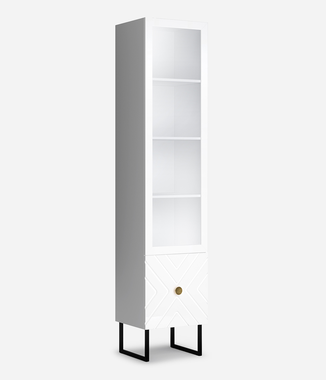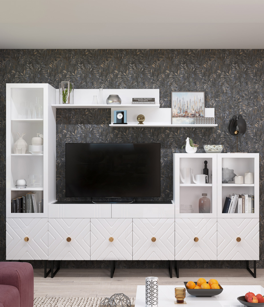 Витрина Марсель играет в современной гостиной одну из ведущих ролей, ведь она позволяет не только хранить посуду, книги и другие предметы, но и украшает пространство. Стеклянная дверка дает возможность наглядно продемонстрировать красивые предметы, рамочки с памятными фото и сувениры.