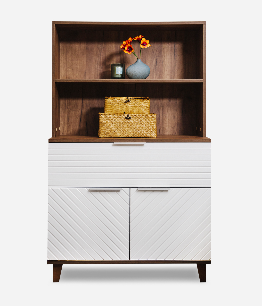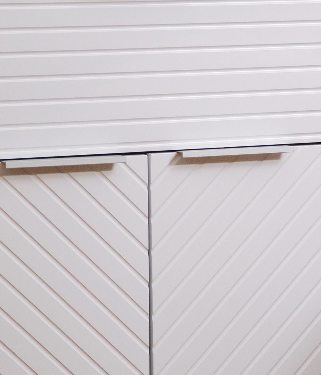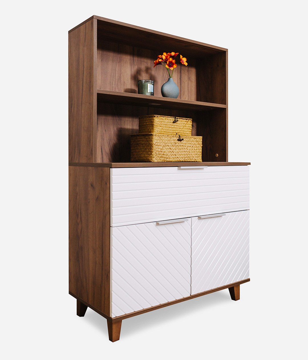 В дизайне шкаф-витрины Марвин нет ничего лишнего. Такая мебель привлекает внимание своей лаконичностью, позволяющей легко вписать модель в любые современные интерьеры. Особенность шкафа — наличие как закрытых, так и открытых полок.