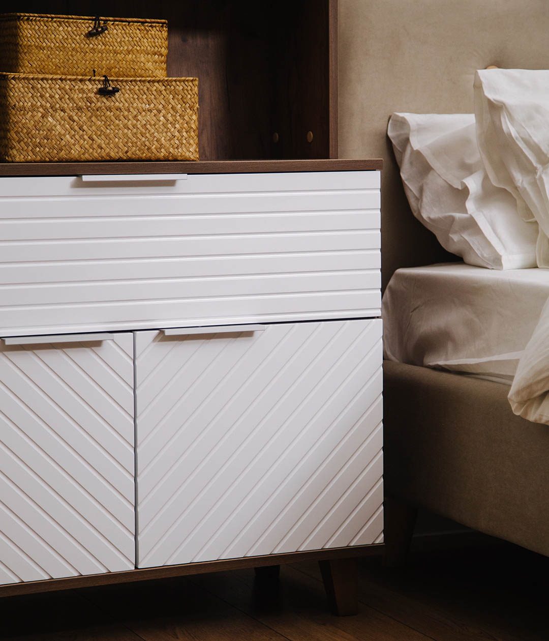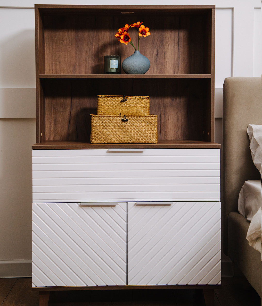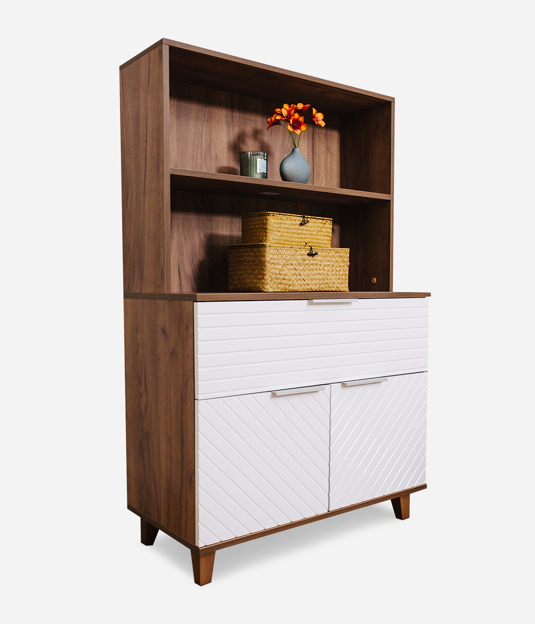 В дизайне шкаф-витрины Марвин нет ничего лишнего. Такая мебель привлекает внимание своей лаконичностью, позволяющей легко вписать модель в любые современные интерьеры. Особенность шкафа — наличие как закрытых, так и открытых полок.