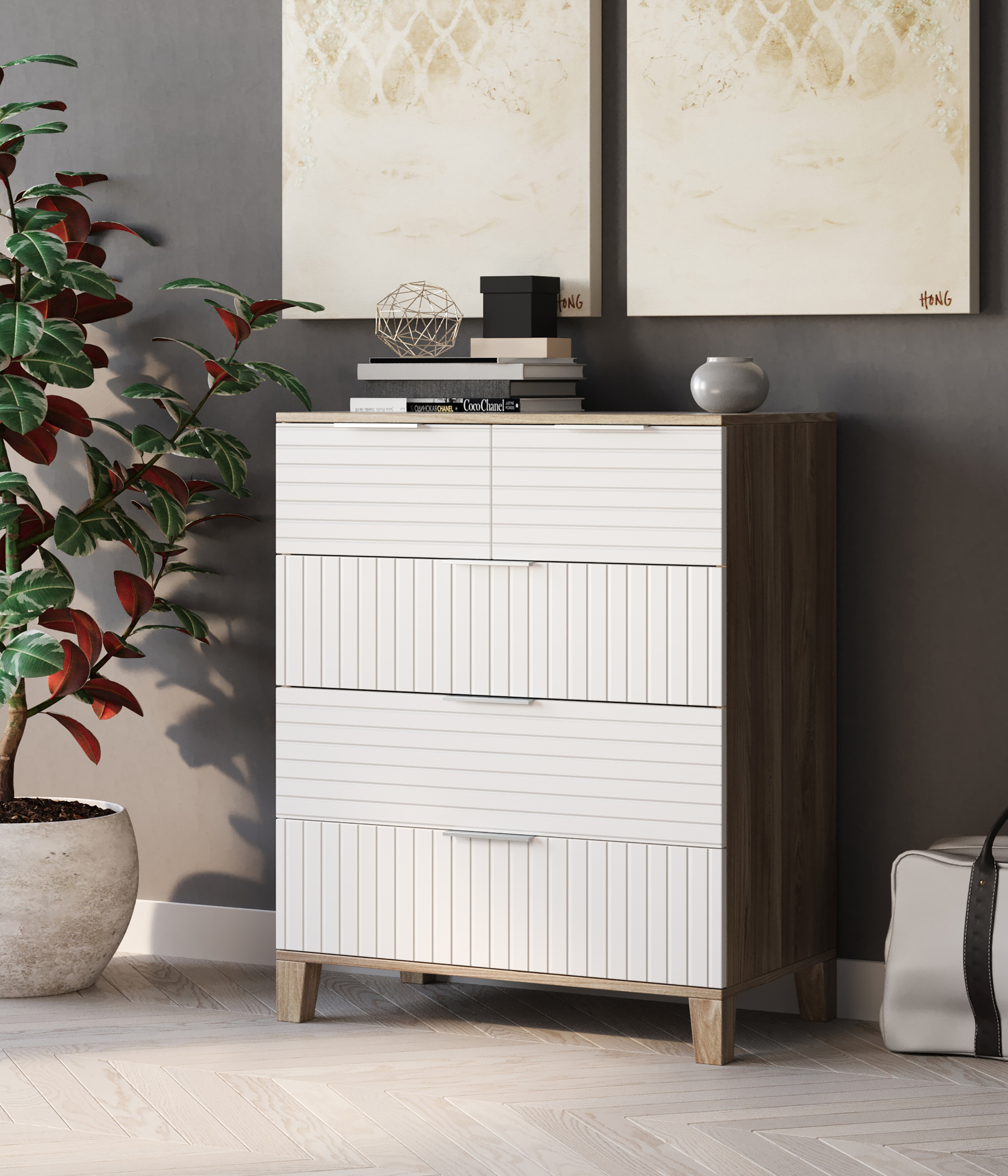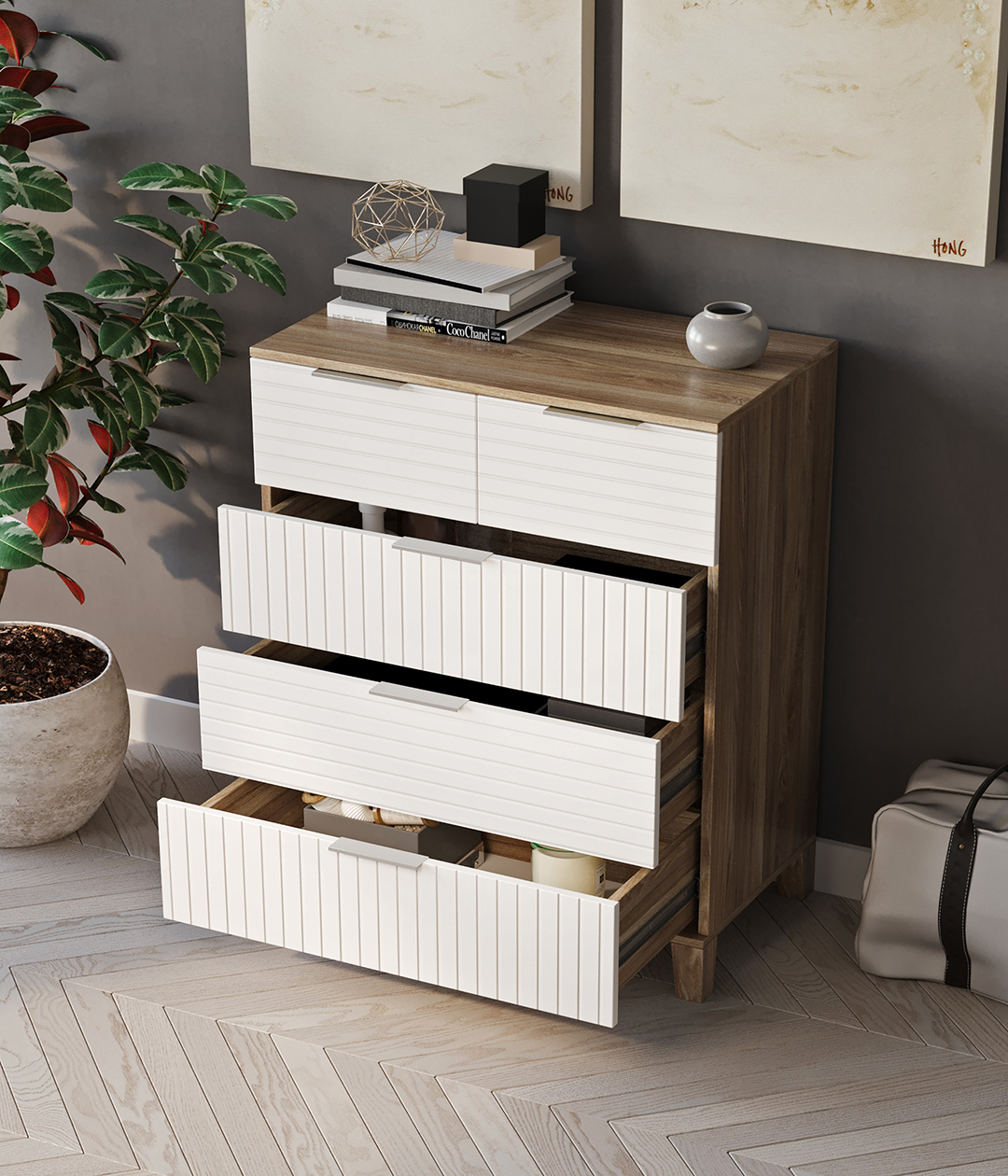 Стильный и практичный комод, решит как минимум две ваших задачи, будет служить многофункциональной нишей для хранения вещей, одежды, белья и универсальной подставкой для различных предметов интерьера, а также можно использовать в виде тумбы под телевизор.