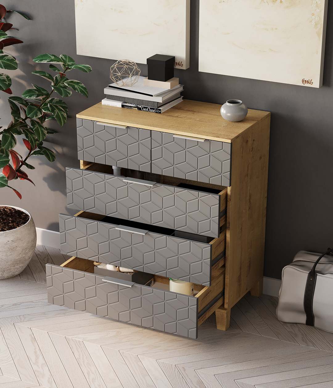 Стильный и практичный комод, решит как минимум две ваших задачи, будет служить многофункциональной нишей для хранения вещей, одежды, белья и универсальной подставкой для различных предметов интерьера, а также можно использовать в виде тумбы под телевизор.