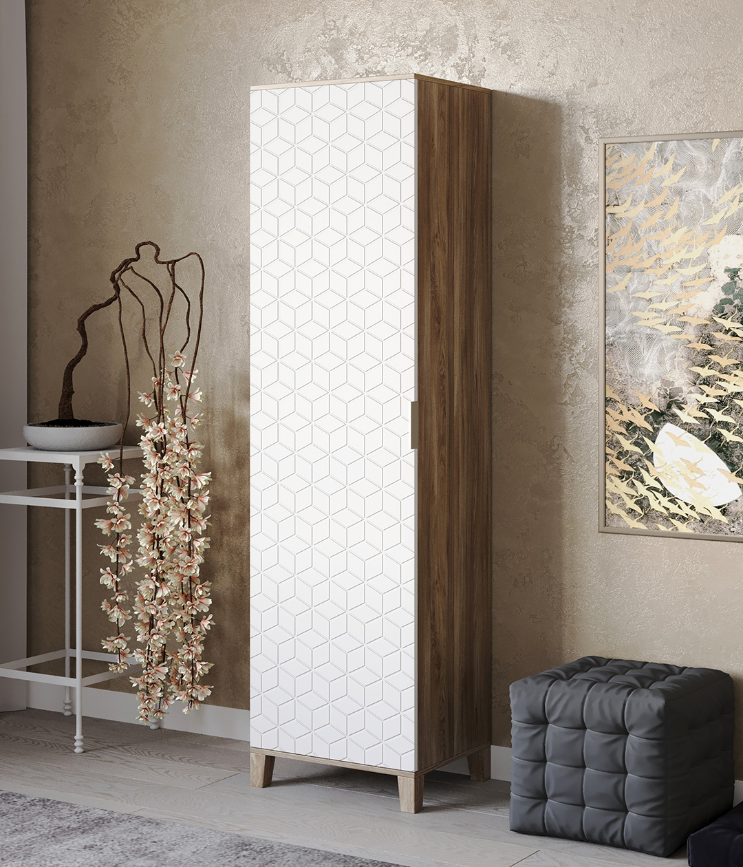 Распашной шкаф пенал Марвин - это идеальное решение для хранения вещей и одежды в прихожей, спальне или ванной комнате. С его помощью вы сможете организовать пространство так, как вам удобно. Шкаф имеет компактные размеры 50х210х40 см, что делает его идеальным для небольших помещений.