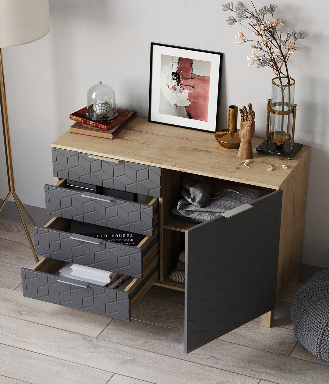 Комод Марвин - это стильное и функциональное решение для вашего интерьера. Узкий комод идеально подойдет для прихожей или гостиной, занимая минимум места и обеспечивая максимум хранения. Комод высокий с ящиками и дверцами позволит удобно организовать пространство для хранения одежды, обуви и различных мелочей.