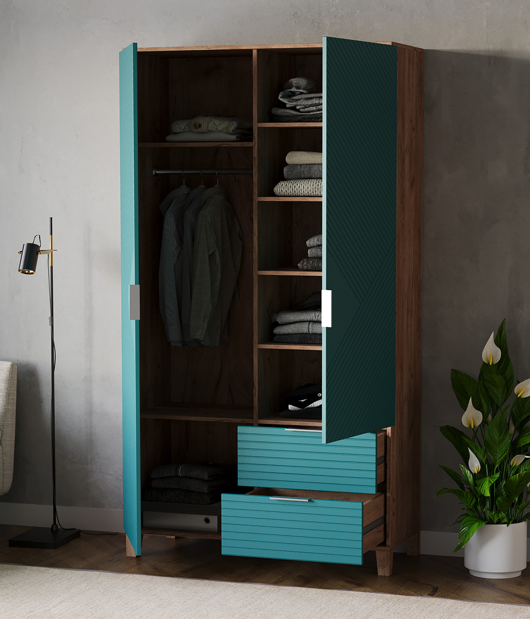Шкаф для одежды Марвин - это стильное и функциональное решение для вашей спальни, детской комнаты, прихожей или коридора. Этот распашной шкаф объединяет в себе функциональность и современный дизайн. Благодаря его размерам (100х210х40 см), в него легко можно уместить большое количество вещей.