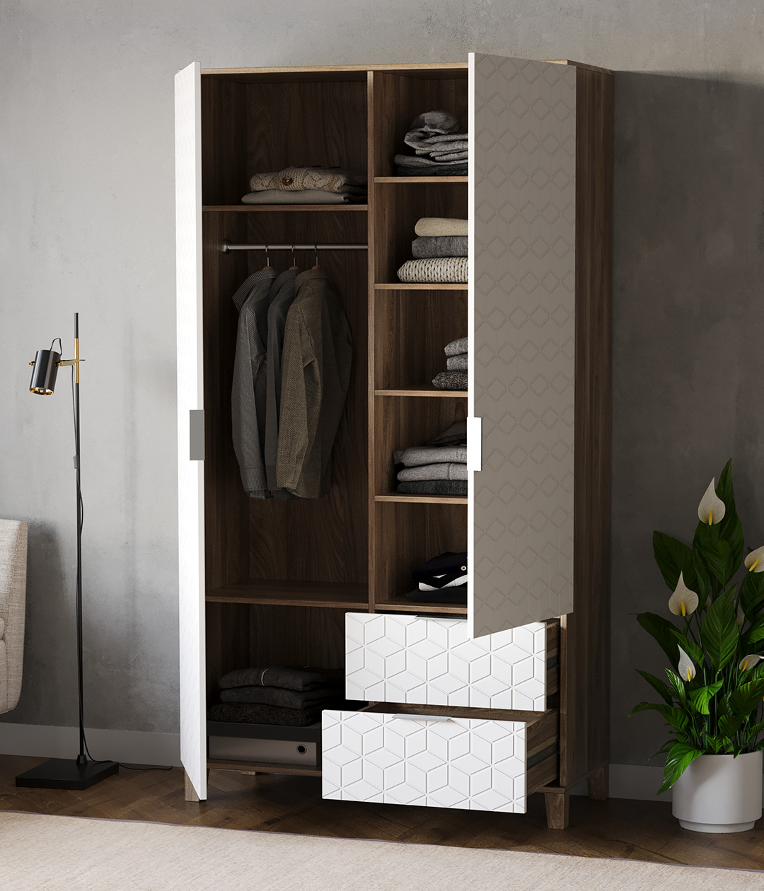 Шкаф для одежды Марвин - это стильное и функциональное решение для вашей спальни, детской комнаты, прихожей или коридора. Этот распашной шкаф объединяет в себе функциональность и современный дизайн. Благодаря его размерам (100х210х40 см), в него легко можно уместить большое количество вещей.