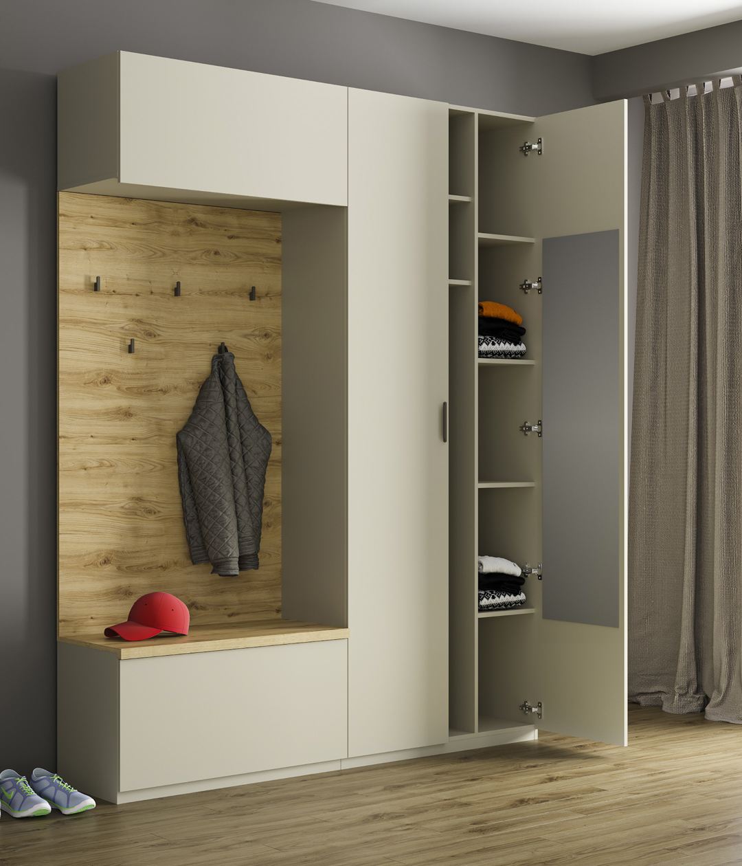 Компактный двухдверный шкаф отлично впишется в интерьер прихожей или комнаты и поможет организовать удобное хранение одежды или головных уборов.