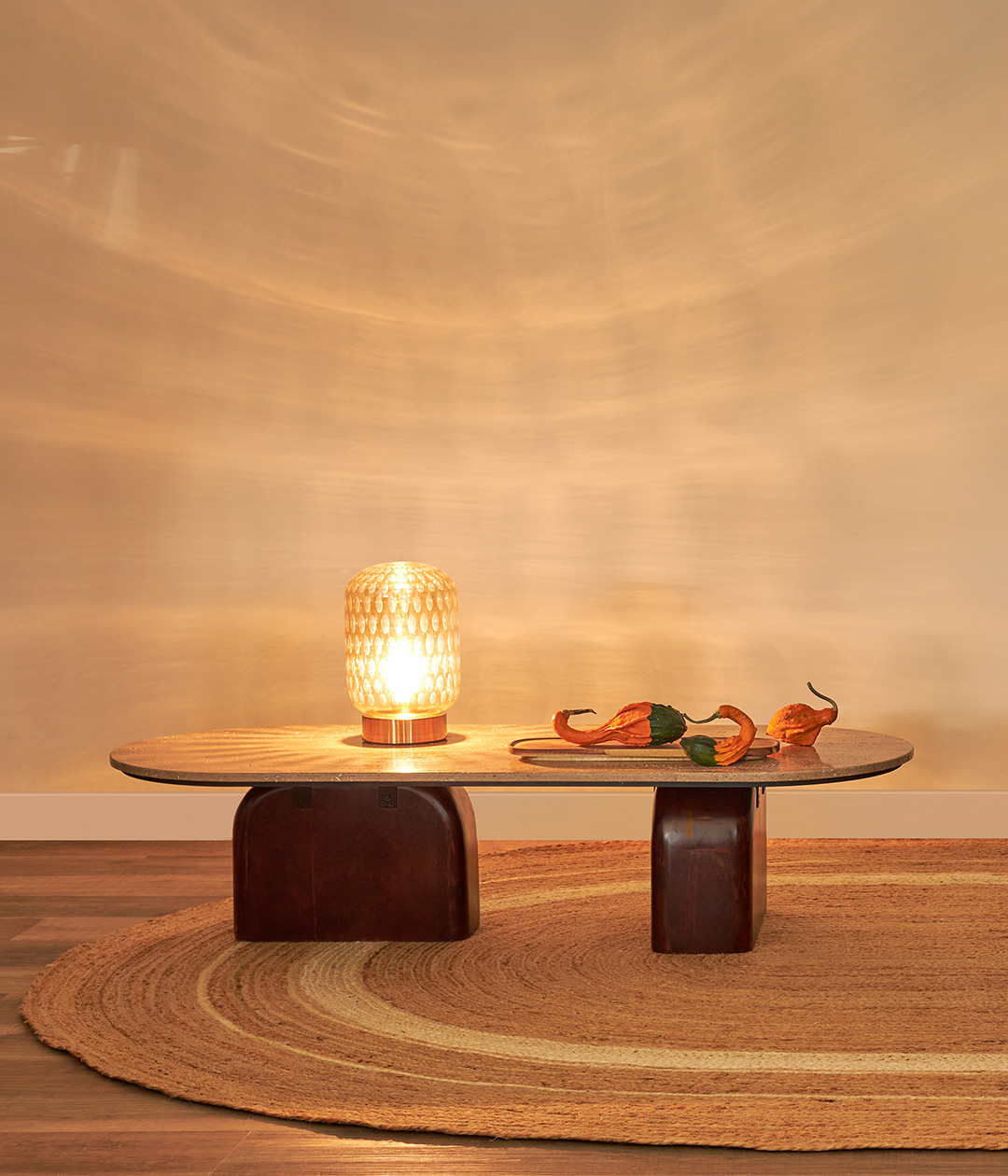 Светильник настольный Mystic Aura станет украшением любого интерьера и центром притяжения взглядов. Отличительная особенность коллекции – необычный плафон, который красиво преломляет свет, создавая в помещении волшебную атмосферу. Модель отлично смотрится на столе, прикроватной тумбе и других поверхностях.