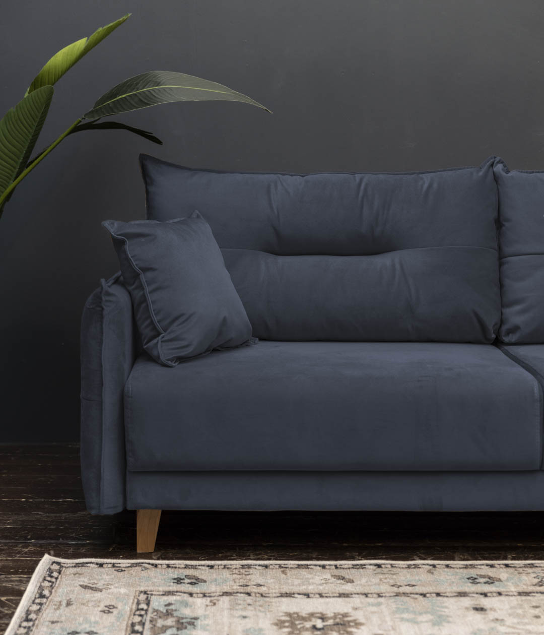 Диван Нампа станет сердцем вашего интерьера, притягивая взгляды современным дизайном и оригинальными подлокотниками и подушками. Мягкий бархатистый велюр не только приятен на ощупь, но и обладает антивандальными свойствами, легко очищается. Высокие ножки придают легкость и элегантность, создавая атмосферу уюта и стиля.