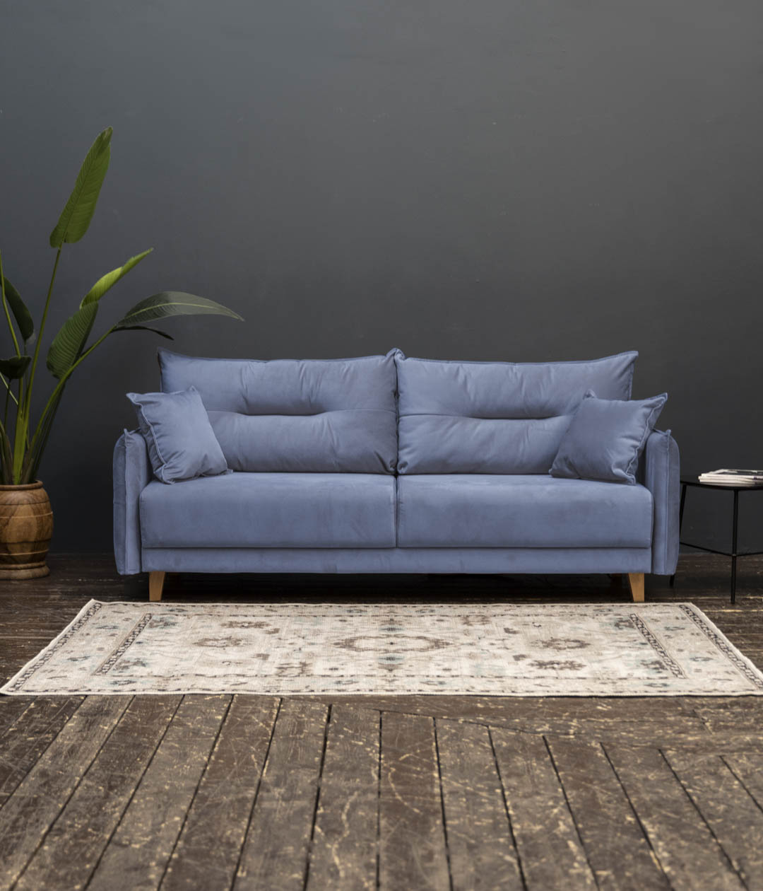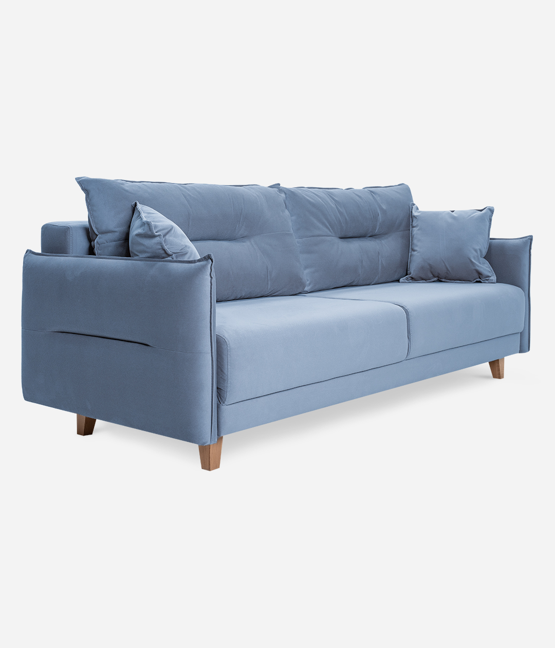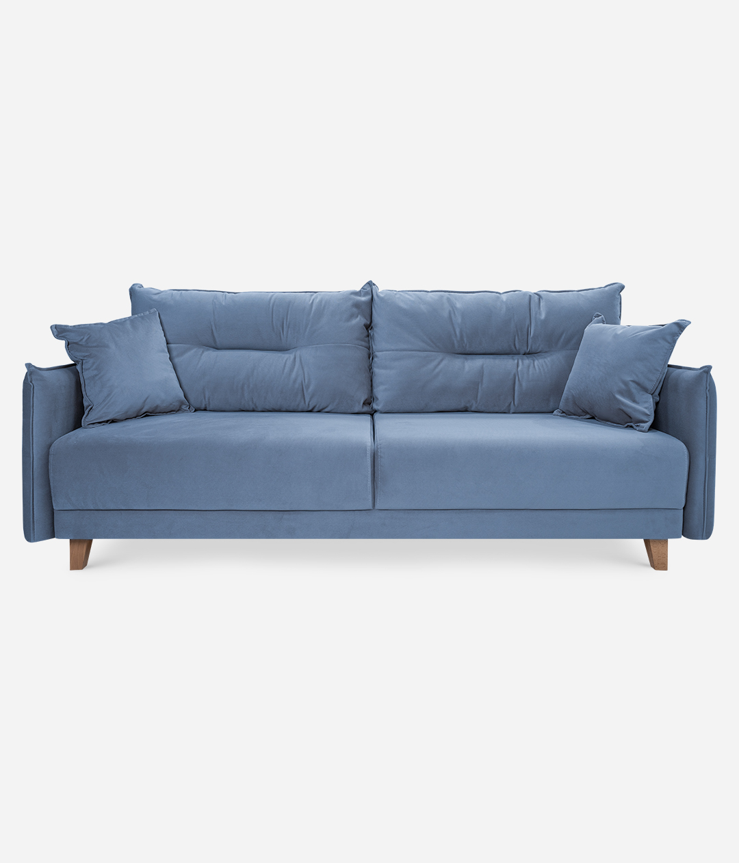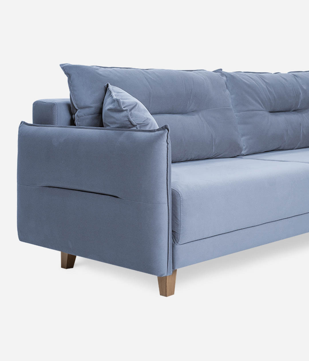 Диван Нампа станет сердцем вашего интерьера, притягивая взгляды современным дизайном и оригинальными подлокотниками и подушками. Мягкий бархатистый велюр не только приятен на ощупь, но и обладает антивандальными свойствами, легко очищается. Высокие ножки придают легкость и элегантность, создавая атмосферу уюта и стиля.