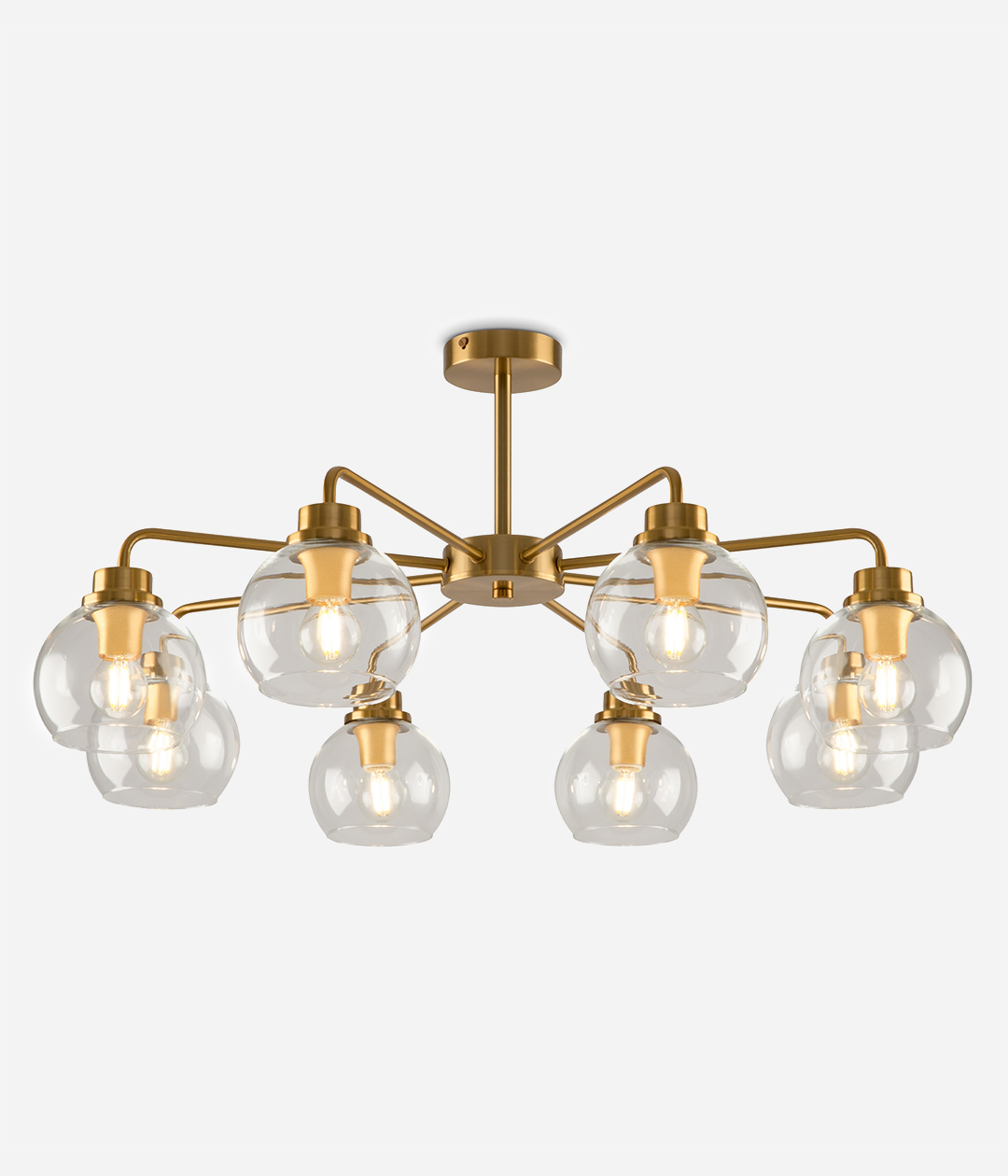 Люстра Neptune вобрала всё лучшее от минимализма и лофта, позволив нам насладиться сдержанной брутальной эстетикой. Арматура из металла окрашена в традиционный цвет латуни. Её строгий геометричный силуэт продолжают округлые плафоны, направленные вниз. Прозрачное стекло и концентрированный световой поток обеспечивают яркое освещение.