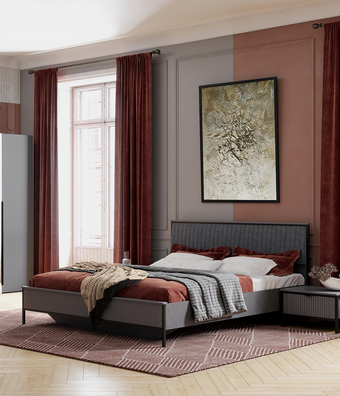 Кровать Нора на высоких металлических ножках в современном дизайне станет центром притяжения, сочетая стиль и функциональность. Её лаконичные линии и минималистичный профиль идеально вписываются в современные интерьеры, придавая комнате элегантный и утончённый вид.