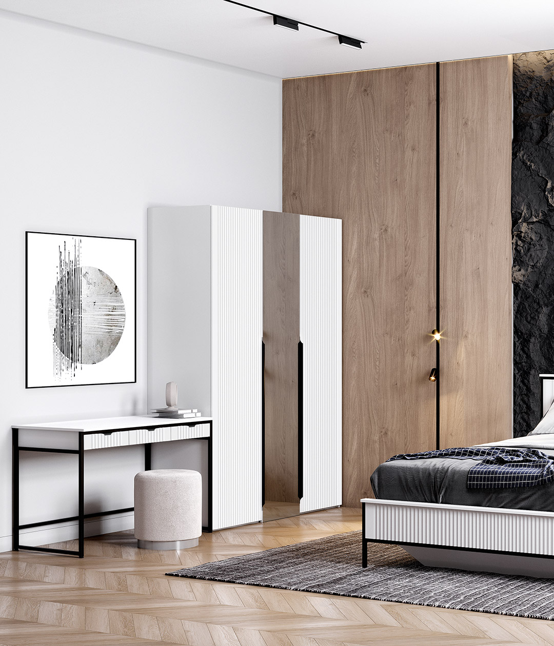 Элегантный трехстворчатый шкаф Нора станет идеальным решением для хранения вещей в вашем доме. Выполненный в универсальном цвете, он легко впишется в любой интерьер — от классического до современного.