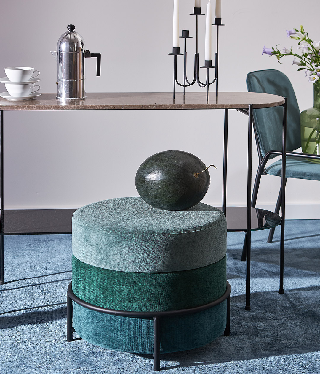 Пуф Norunn, напоминающий популярный французский десерт, поможет сделать акцент на оригинальном дизайне интерьера.