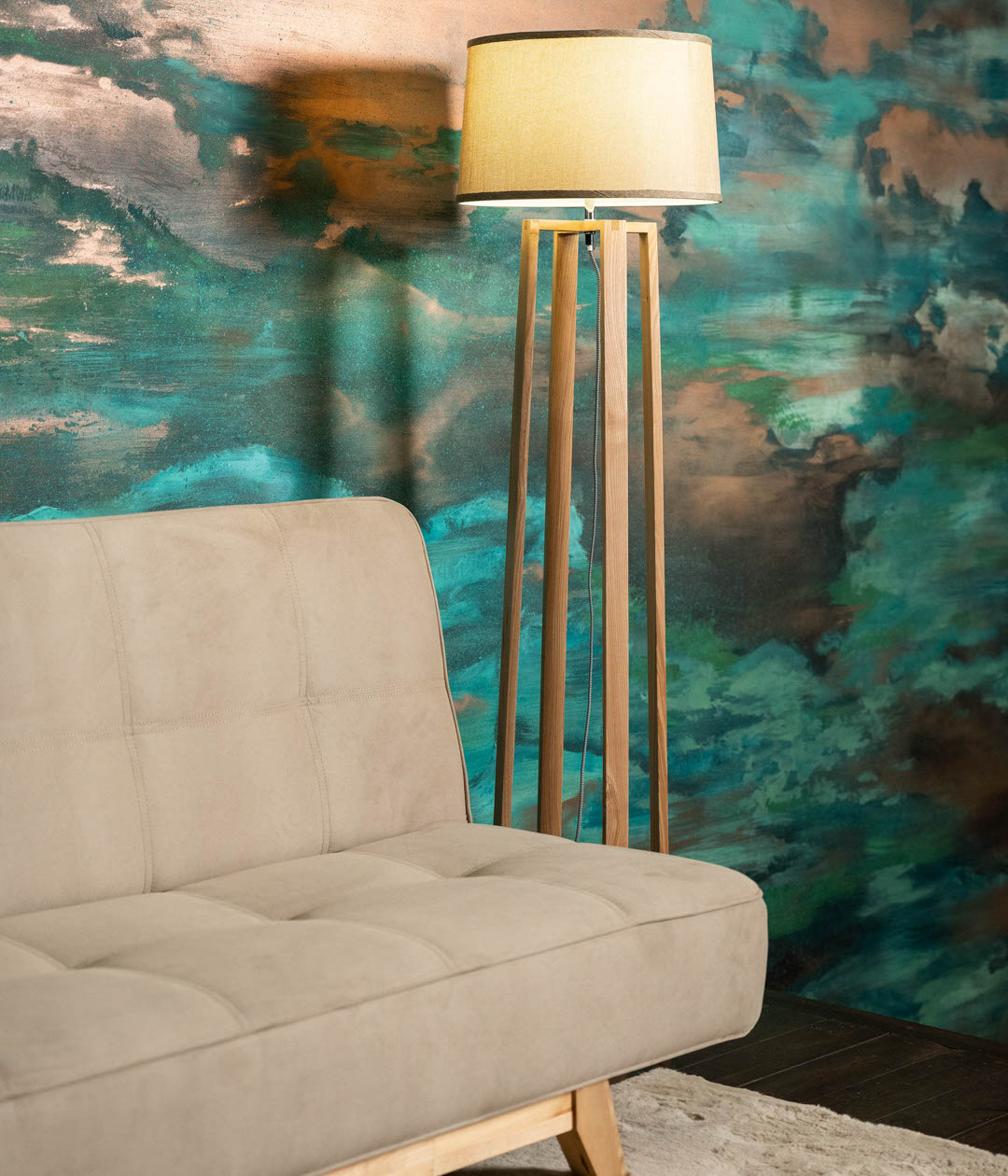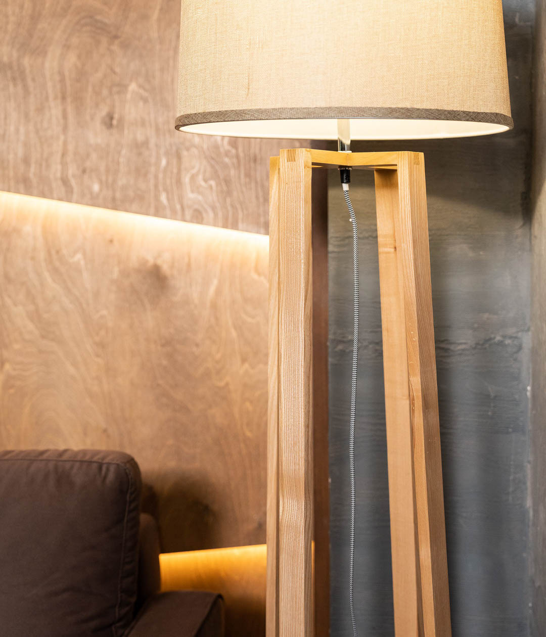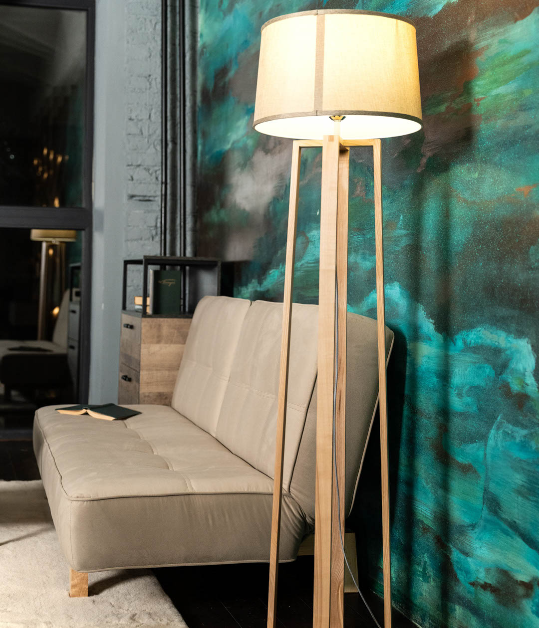 Торшер выполнен в современном стиле в неброской светлой цветовой гамме. Визуальная простота дизайна позволяет вписать торшер Nubi даже в готовый современный интерьер.
