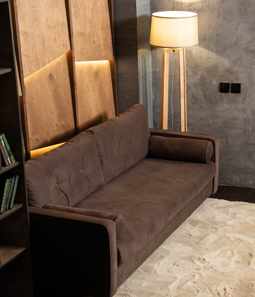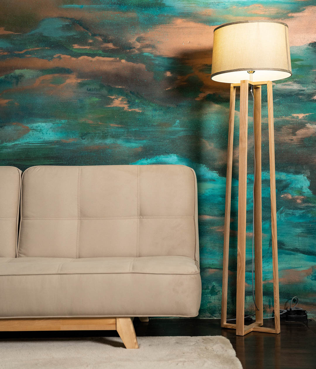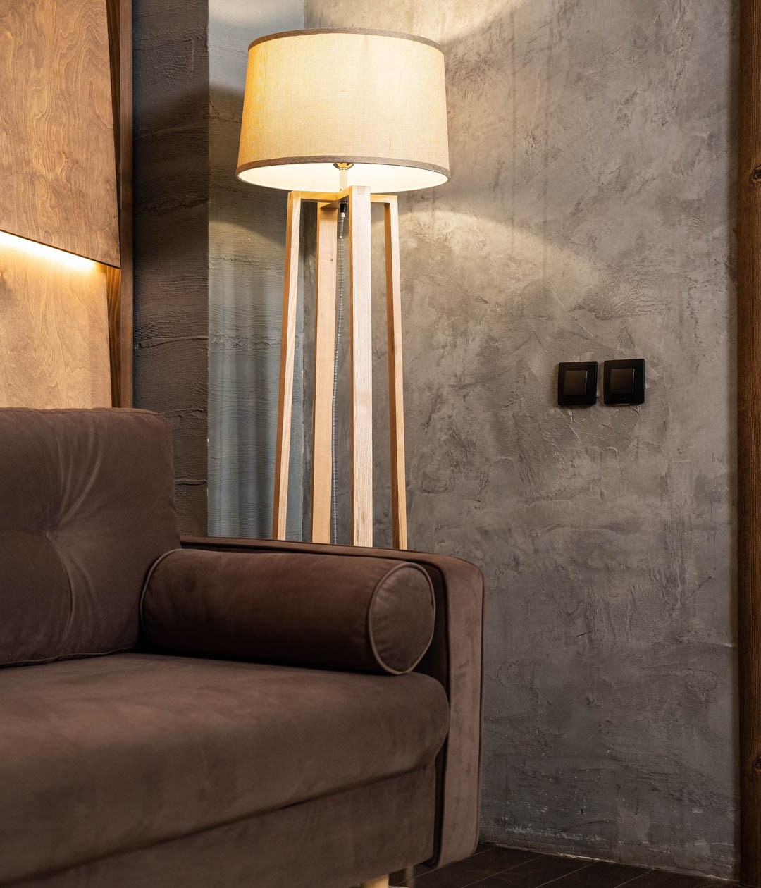 Торшер выполнен в современном стиле в неброской светлой цветовой гамме. Визуальная простота дизайна позволяет вписать торшер Nubi даже в готовый современный интерьер.