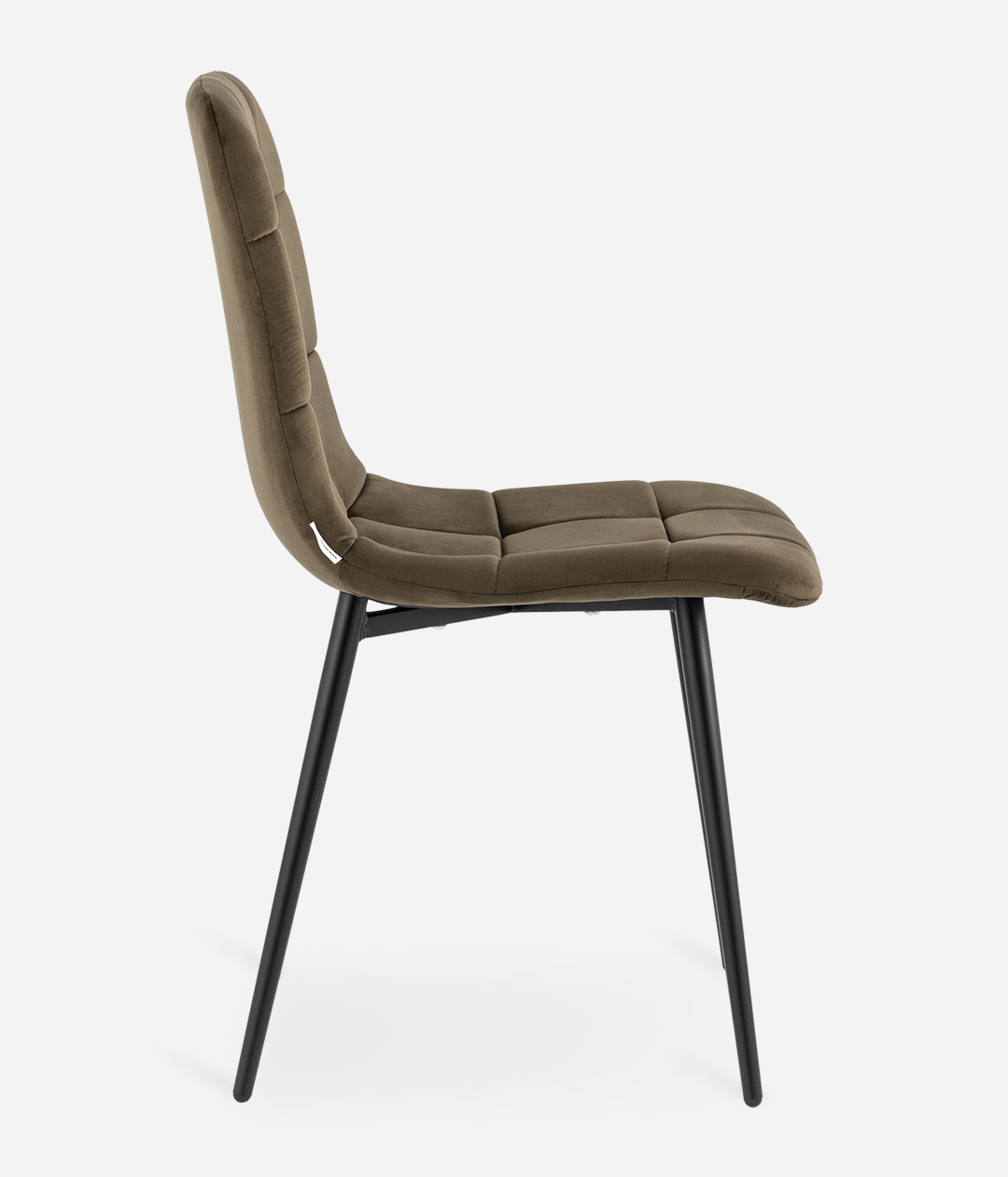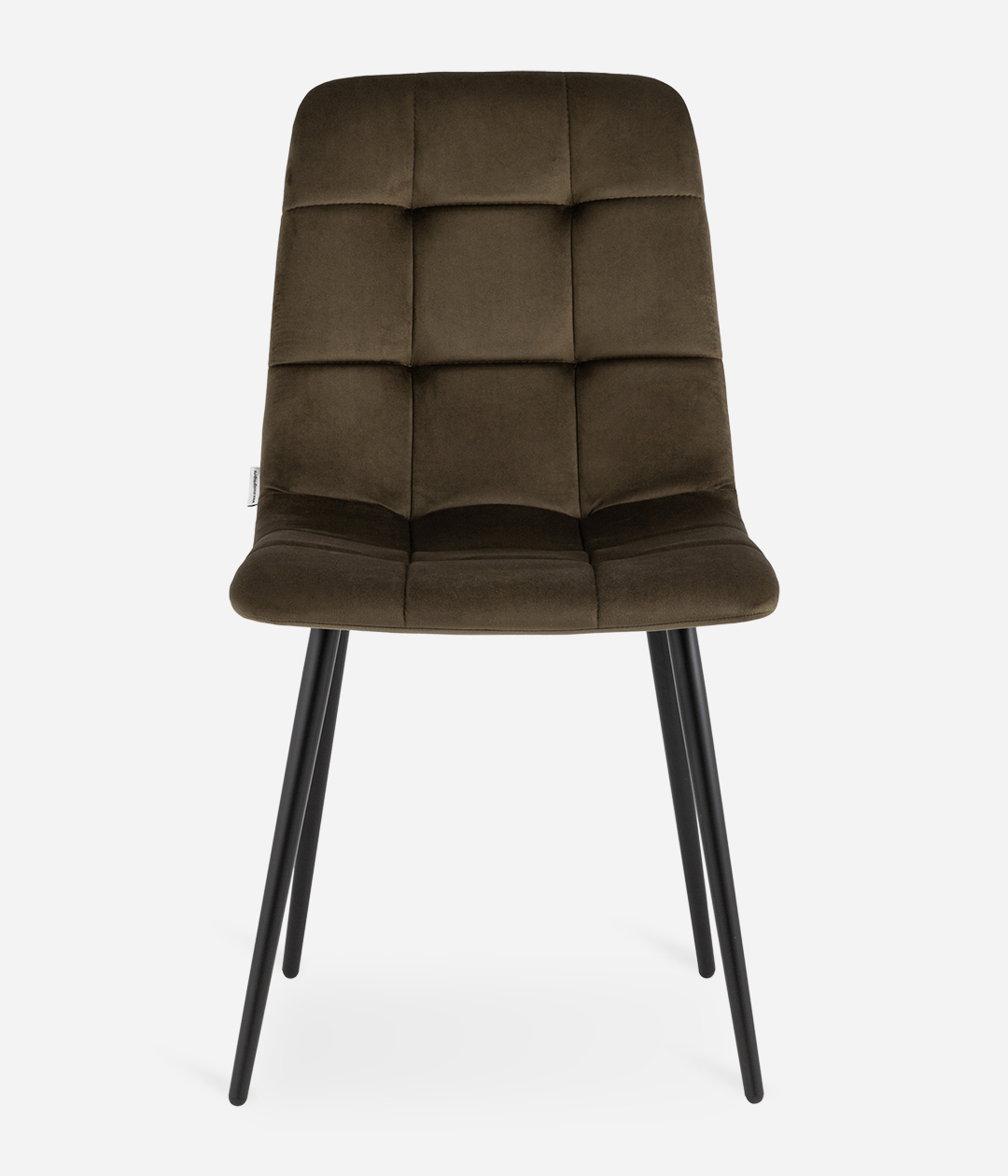 Классический стул в мягкой обивке из велюра без подлокотников. Анатомическая форма сиденья обеспечивает удобство, а декоративная стяжка придает объём и защищает от образования вмятин. Металлические ножки выдерживают значительные нагрузки.