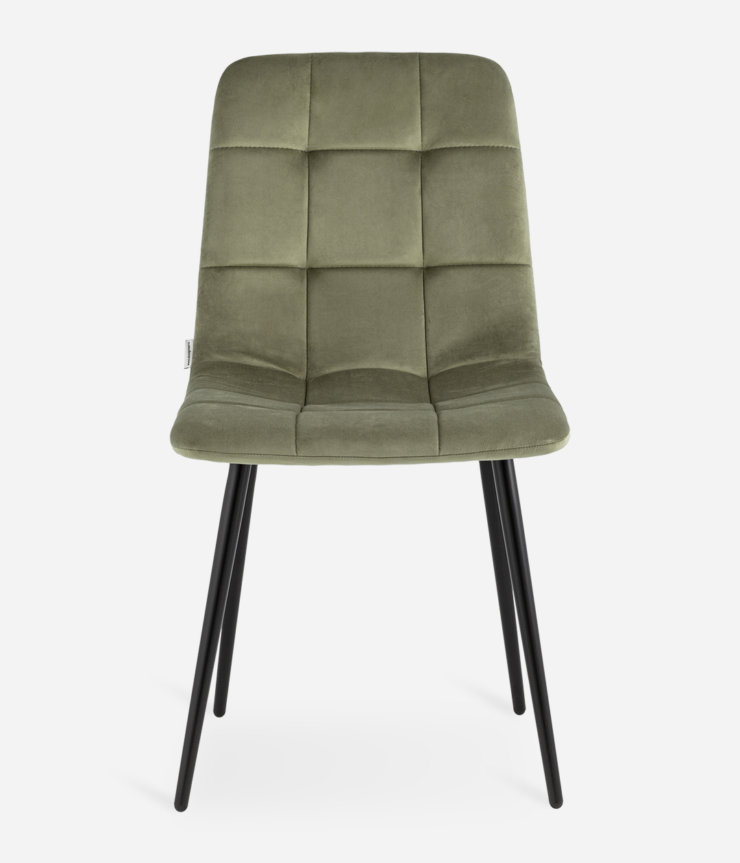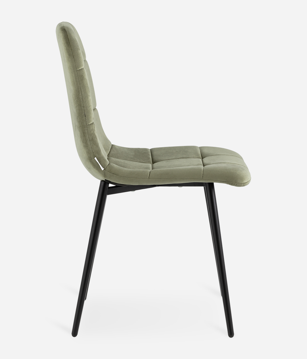 Классический стул в мягкой обивке из велюра без подлокотников. Анатомическая форма сиденья обеспечивает удобство, а декоративная стяжка придает объём и защищает от образования вмятин. Металлические ножки выдерживают значительные нагрузки.