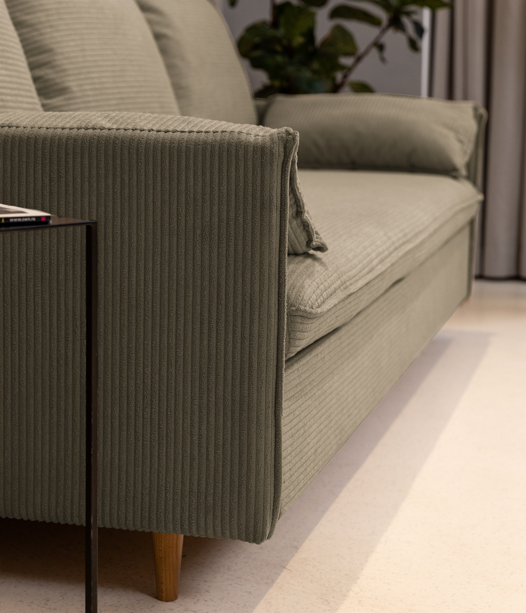Диван Оденсе в скандинавском стиле — это идеальное сочетание элегантности и комфорта. Его высокие ножки придают легкость и воздушность, создавая ощущение простора в интерьере. Мягкие спинные подушки обеспечивают максимальное удобство, позволяя расслабиться и наслаждаться отдыхом. Удобные подушки на подлокотниках добавляют дополнительный комфорт, создавая уютное место для чтения или общения с близкими.