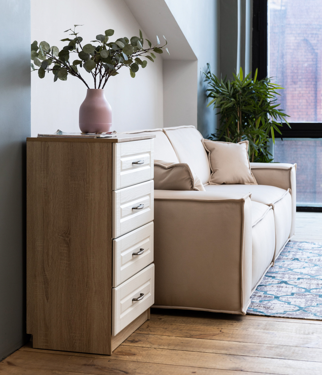 Тумба Оливия станет практичным дополнением спальни или гостиной. Модель имеет небольшую глубину, что позволит разместить его даже в условиях небольшого пространства.