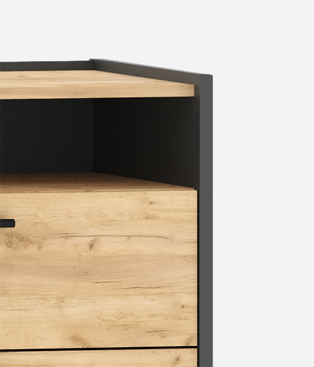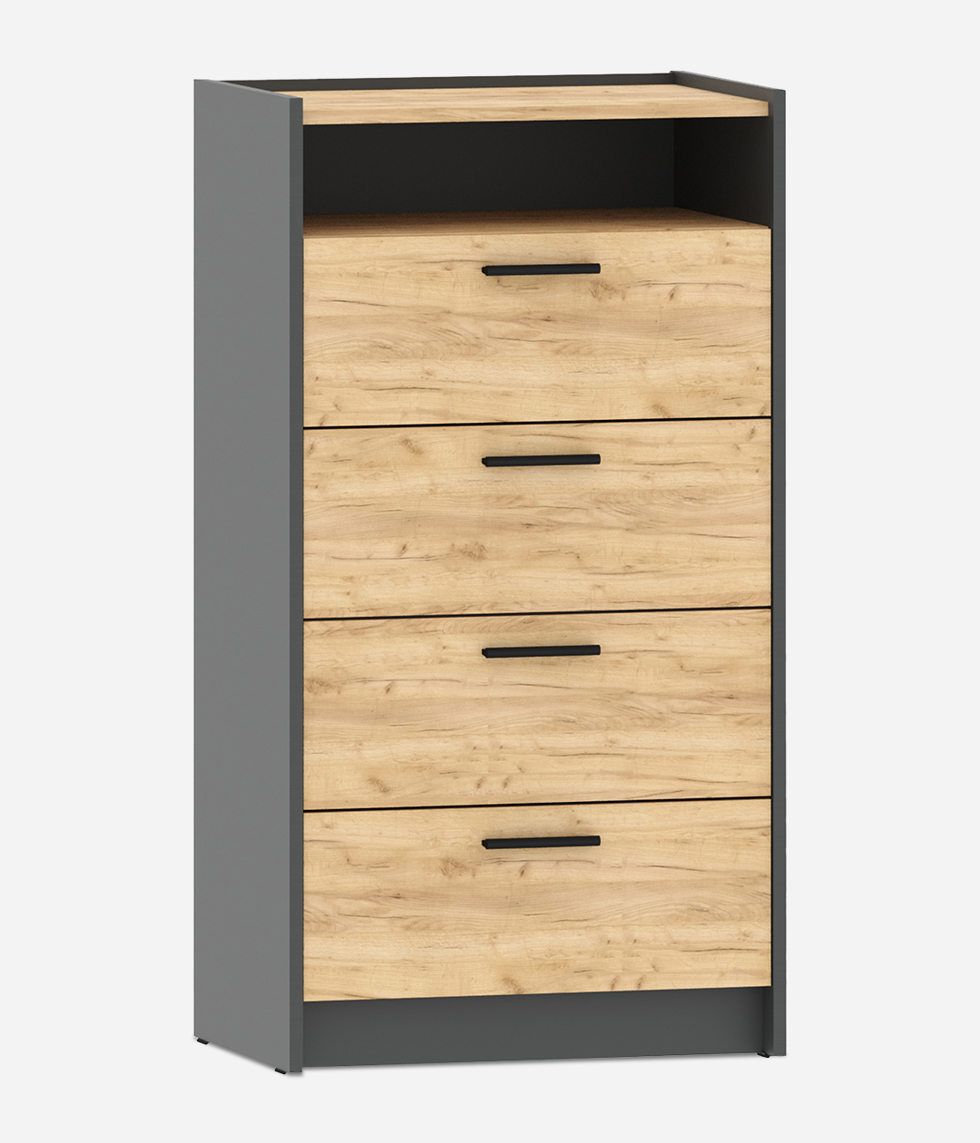 Комод с четырьмя ящиками и отрытой нишей из новой коллекции Оттавия представлен в двух оттенках на выбор – белый и антрацит, которые легко впишутся как в скандинавский, так и в урбанистический интерьер и придадут спальне современный вид.