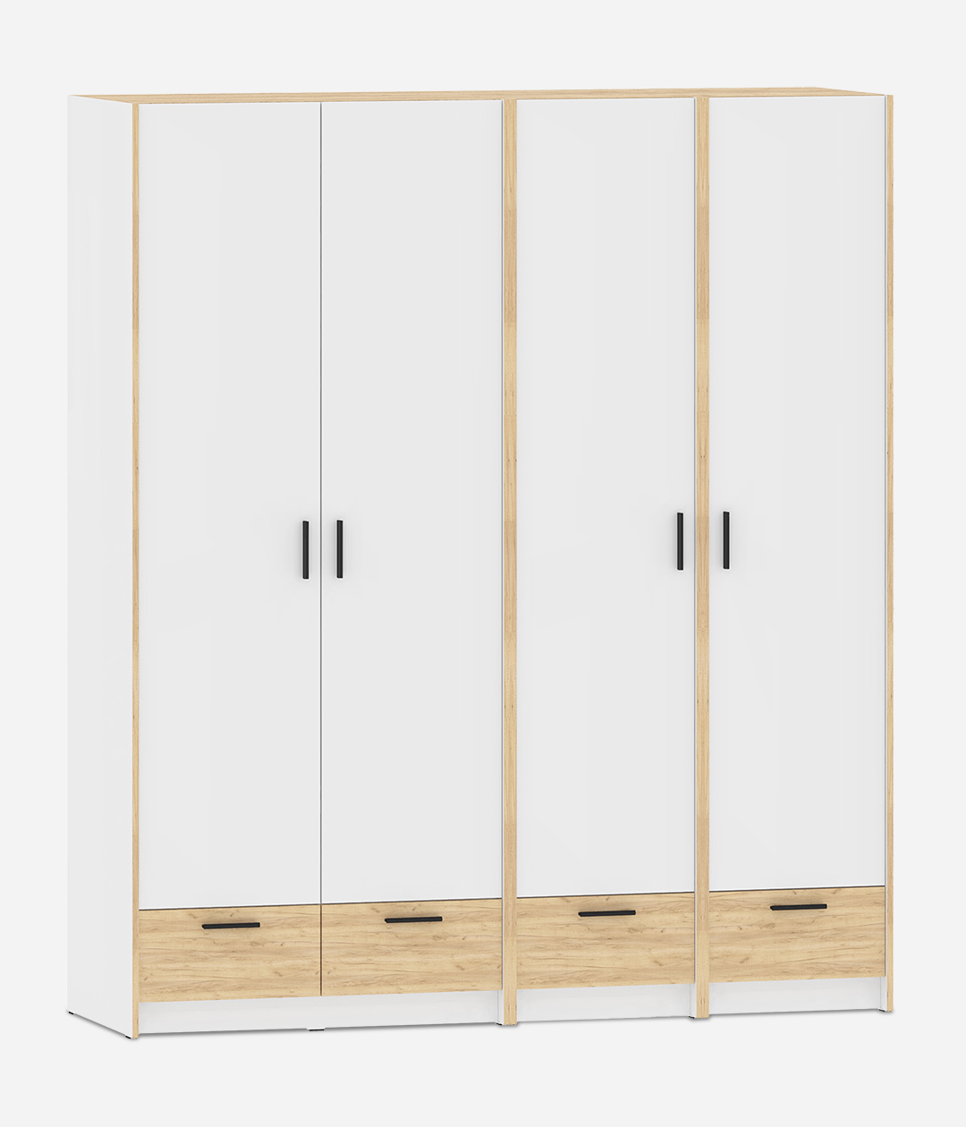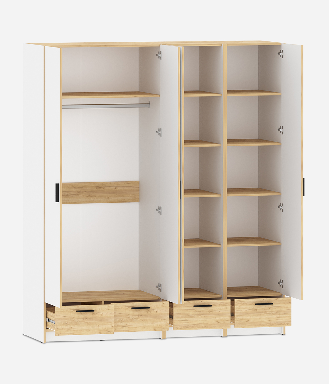 Четырехстворчатый шкаф с четырьмя ящиками из новой коллекции Оттавия представлен в двух цветах на выбор – белый и антрацит. Шкаф отлично подойдет в гостиную для любого современного интерьера, как скандинавского, так и урбанистического.