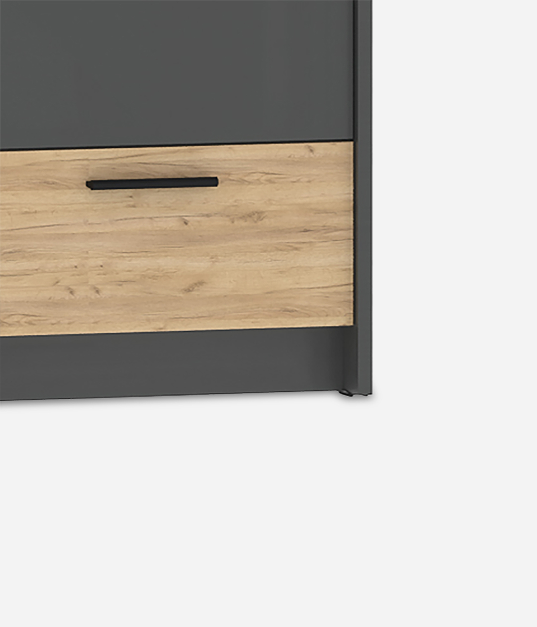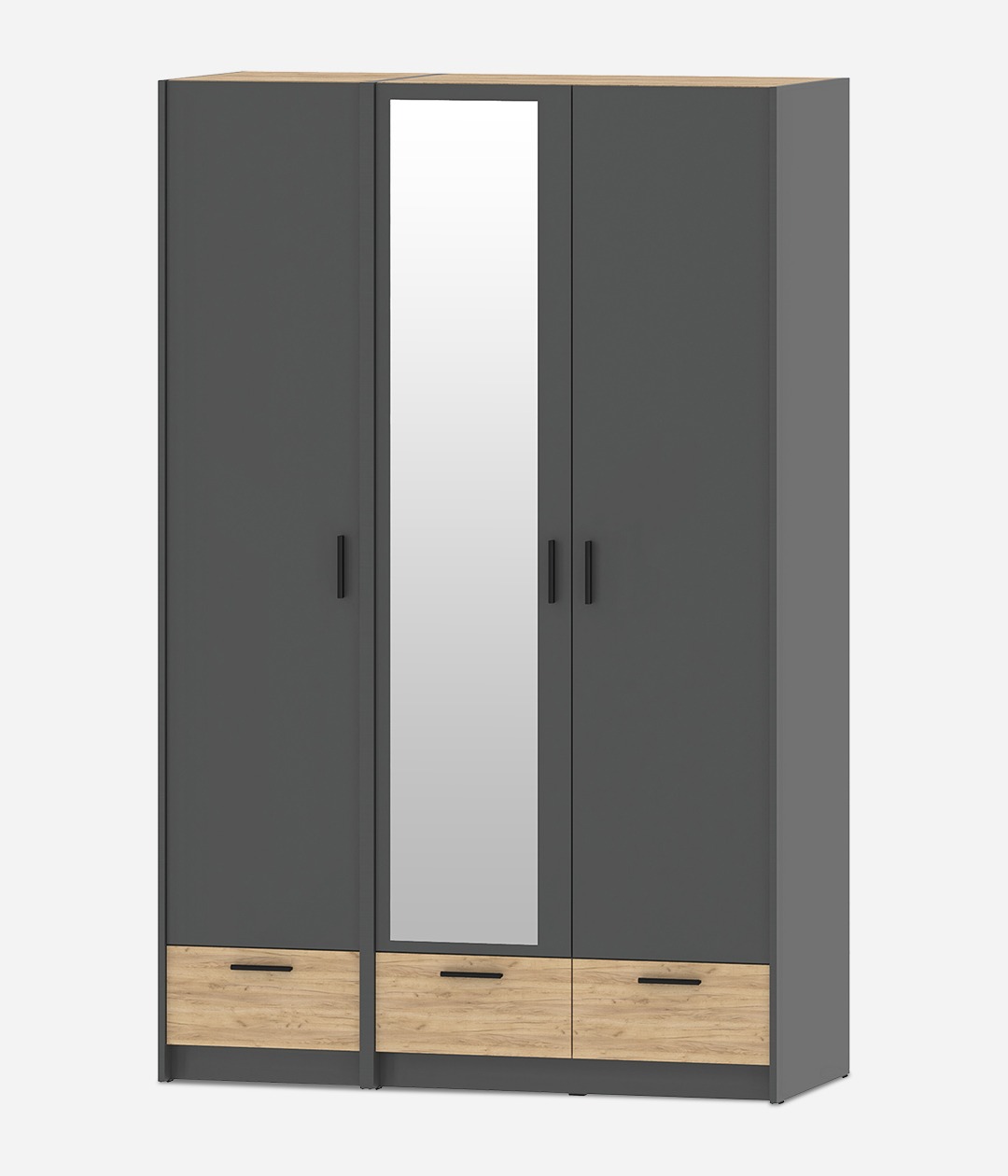 Трехстворчатый шкаф со штангой, полками и тремя ящиками новой коллекции Оттавия представлен в двух цветах на выбор – белый и антрацит. Шкаф отлично подойдет в гостиную для любого современного интерьера, как скандинавского, так и урбанистического.