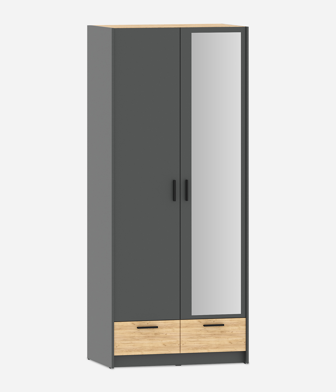 Двустворчатый шкаф для одежды со штангой и двумя ящиками из новой коллекции Оттавия представлен в двух вариантах – с зеркалом на одной створке и без него, а также в двух цветах – белый и антрацит, на счет которых шкаф прекрасно подойдет для спальни в скандинавском или урбанистическом стиле.