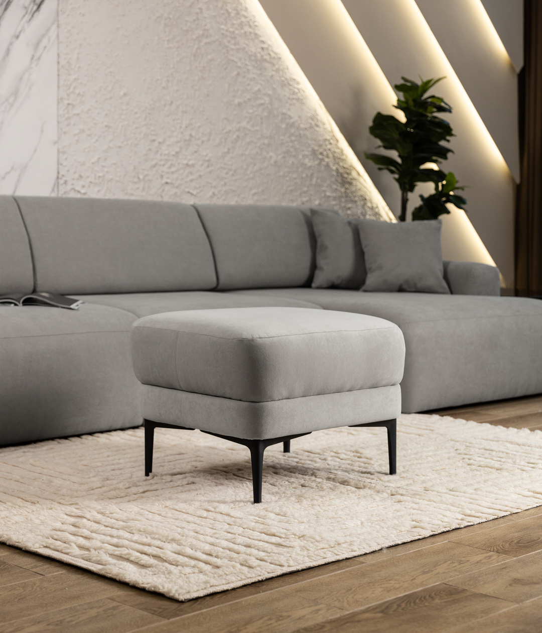 Лаконичный и стильный, изящный пуф Палмер. Высокие металлические ножки и плавные линии создают легкость, визуально расширяя пространство. Пуф будет не только прекрасным дополнением к одноименному дивану, но и стильным акцентом интерьера сам по себе.