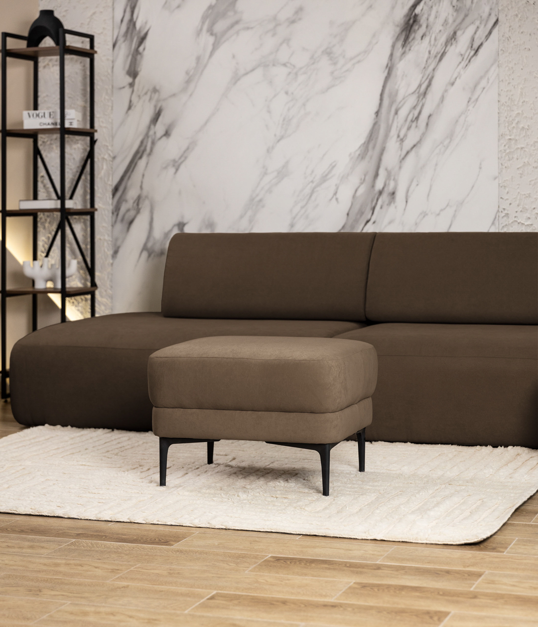 Лаконичный и стильный, изящный пуф Палмер. Высокие металлические ножки и плавные линии создают легкость, визуально расширяя пространство. Пуф будет не только прекрасным дополнением к одноименному дивану, но и стильным акцентом интерьера сам по себе.