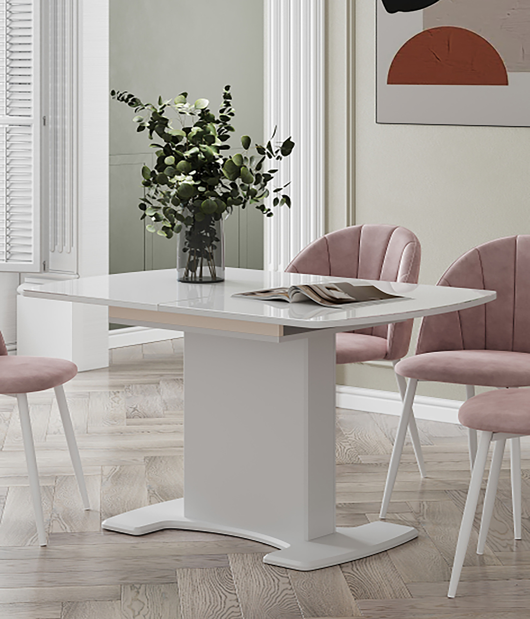Стол на тумбе Палмер - это стильное и практичное решение для вашего интерьера. Невероятно стильный образ белоснежного стола создается благодаря закругленным углам столешницы, плавным очертаниям пьедестала на платформе и сиянию глянцевой столешницы.