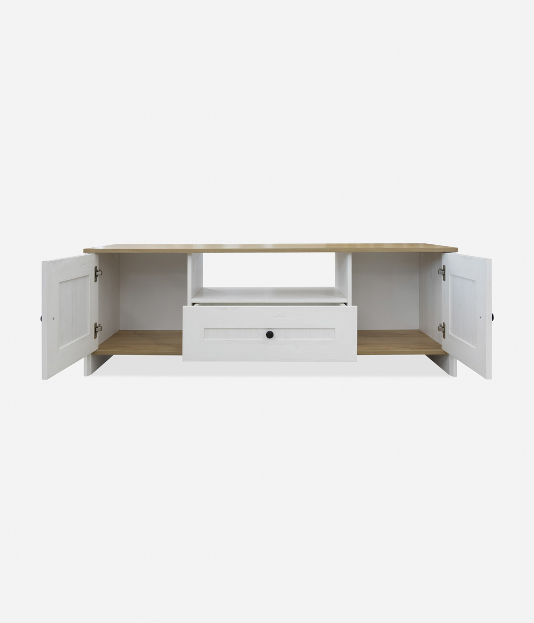 Широкая ТВ-тумба «Парма» добавит элегантности и уюта в интерьер гостиной. На тумбу можно поставить телевизор, а выдвижной ящик пригодятся для хранения аксессуаров.