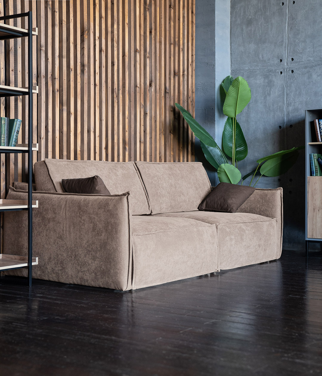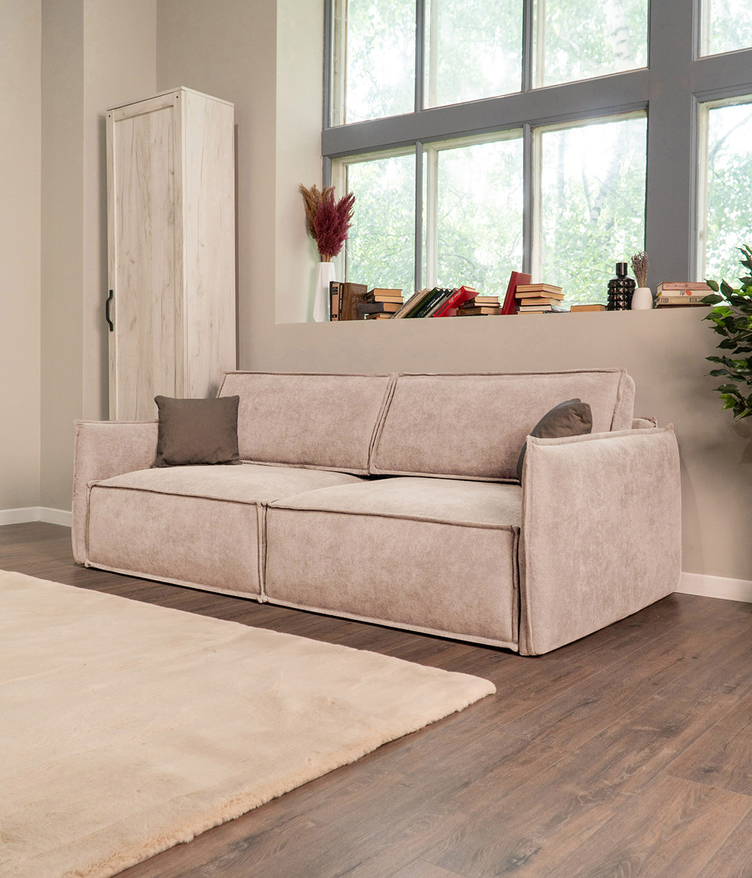 Диван Пеория Бежевый и гостиная Лофт