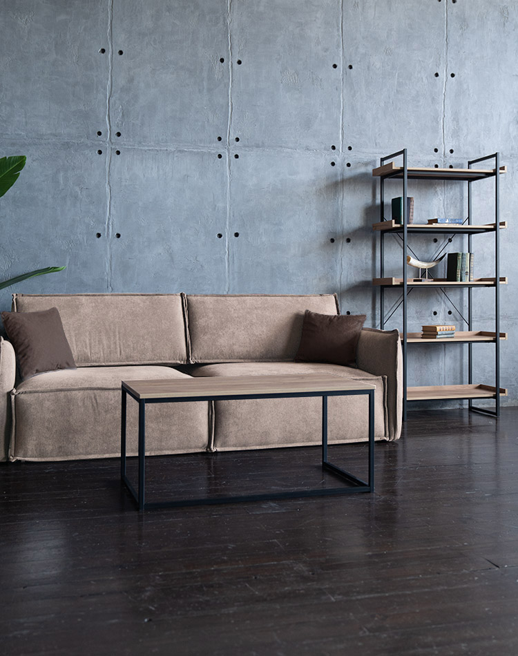 Диван Пеория Бежевый, Журнальный стол Лофт и Стеллаж Лофт