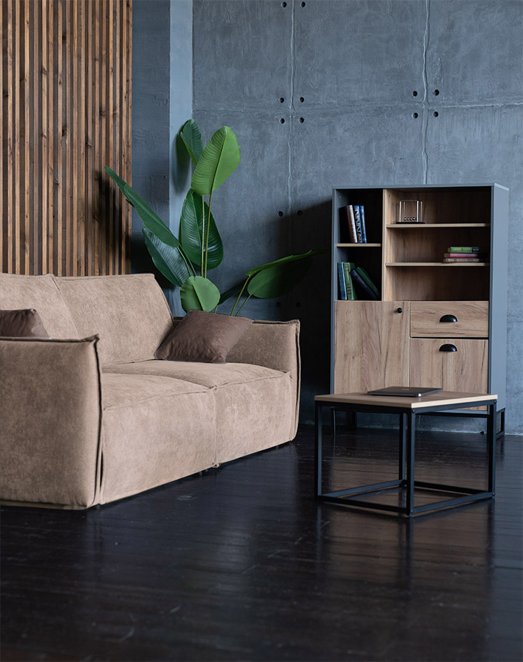 Диван Пеория Бежевый, Стол журнальный Лофт и Шкаф высокий Лофт