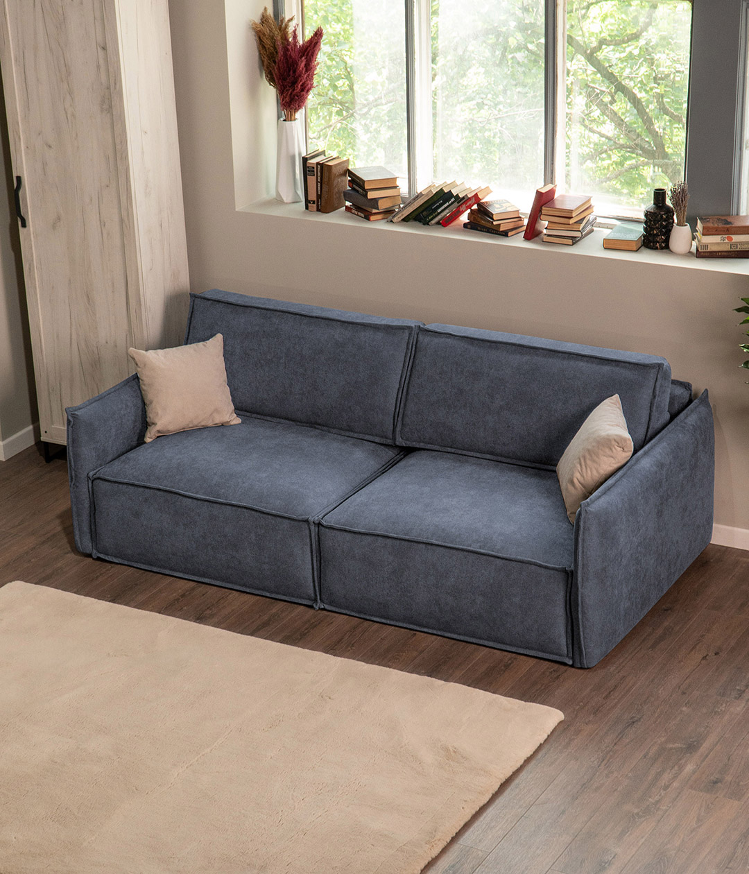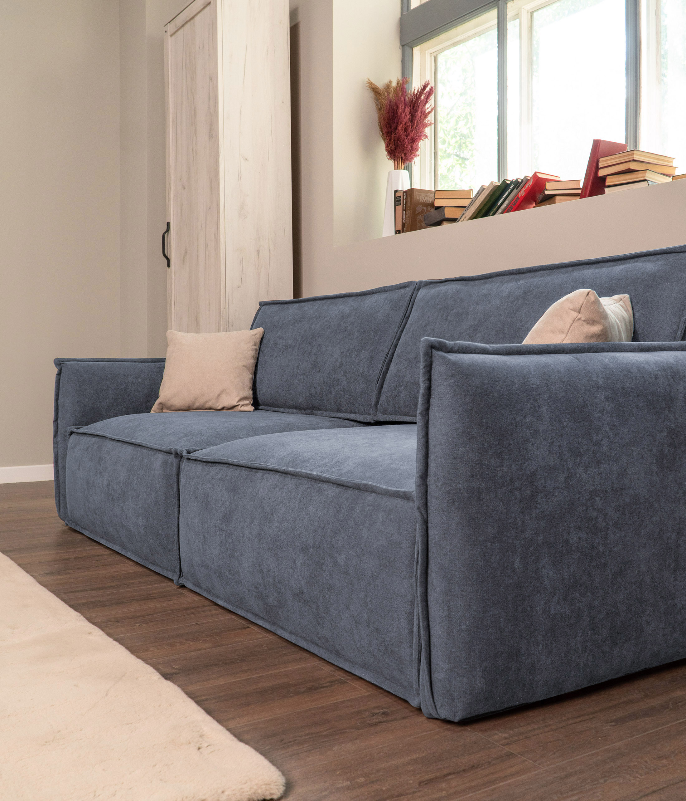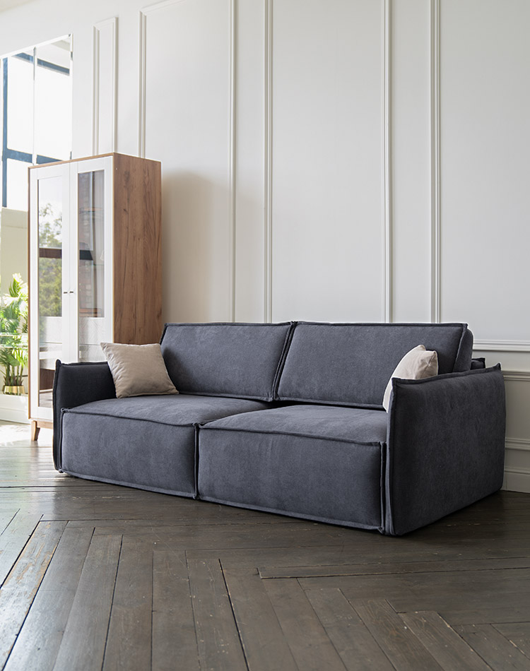 Глубокая, комфортная посадка при малых габаритах. А узкие подлокотники придают дивану утонченный, стильный вид и берегут пространство.