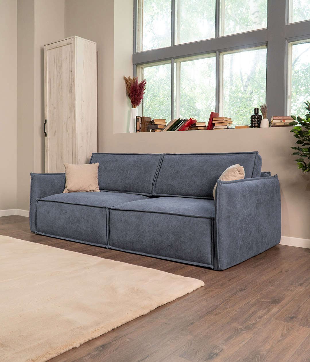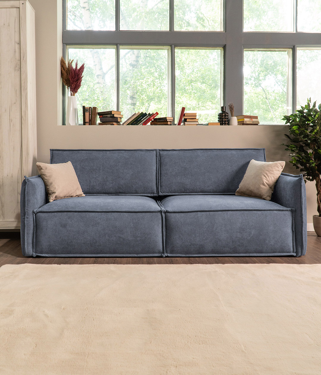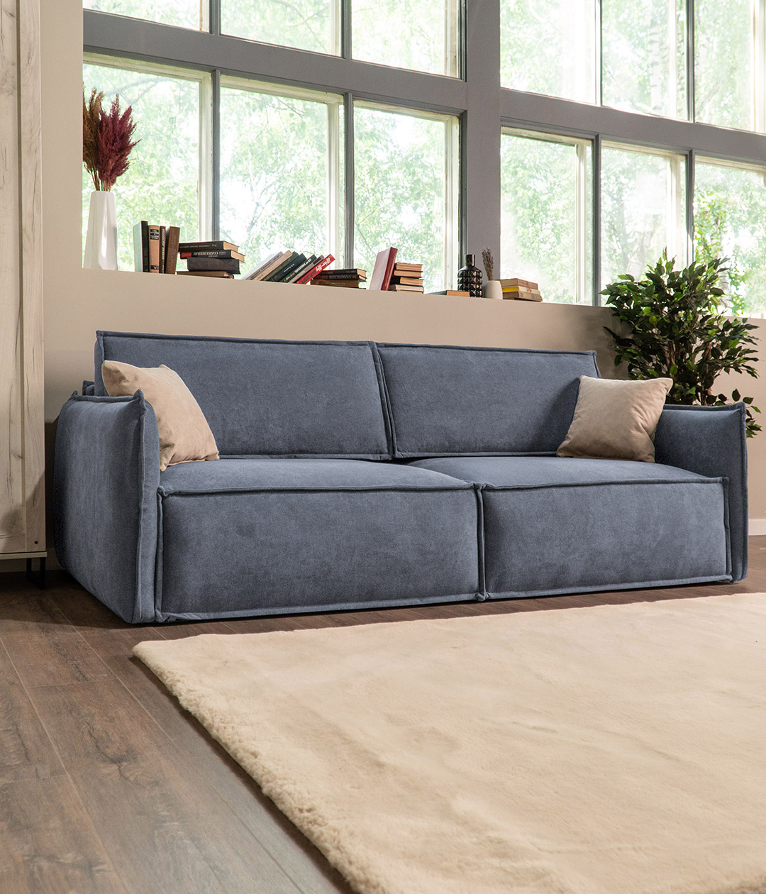 Глубокая, комфортная посадка при малых габаритах. А узкие подлокотники придают дивану утонченный, стильный вид и берегут пространство.