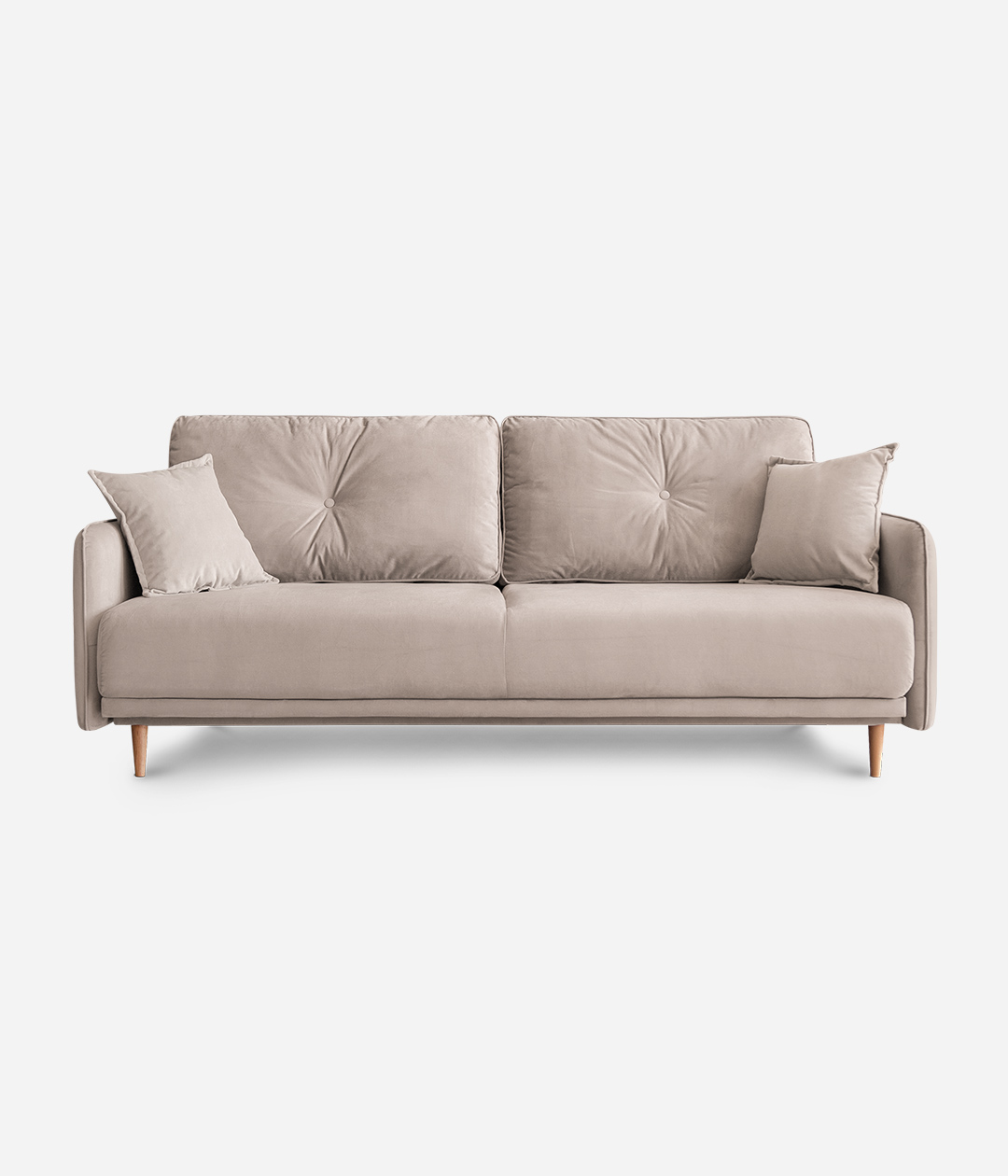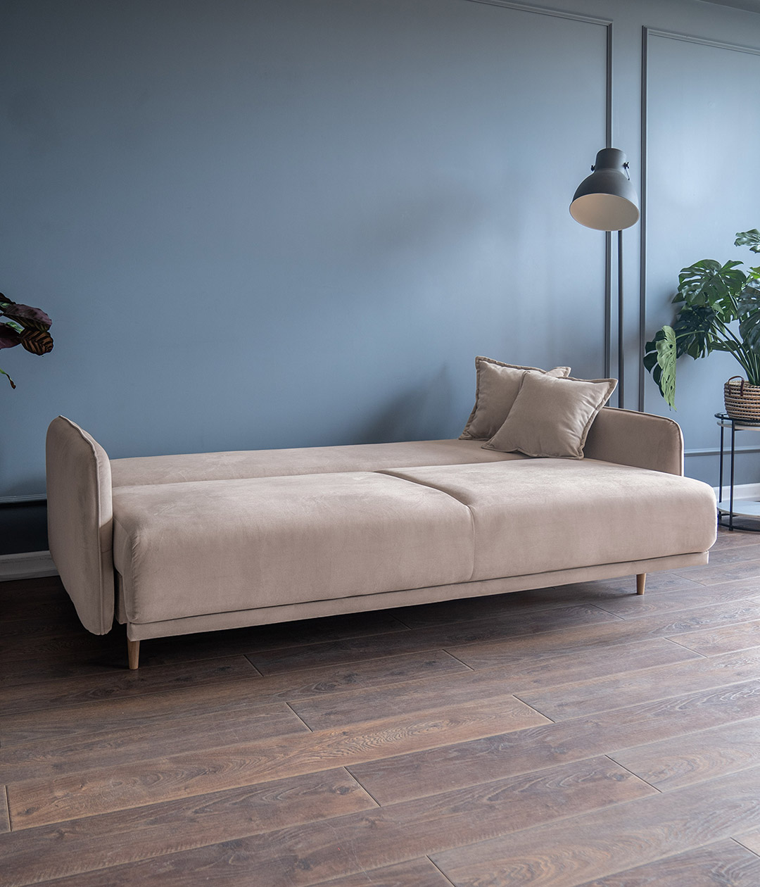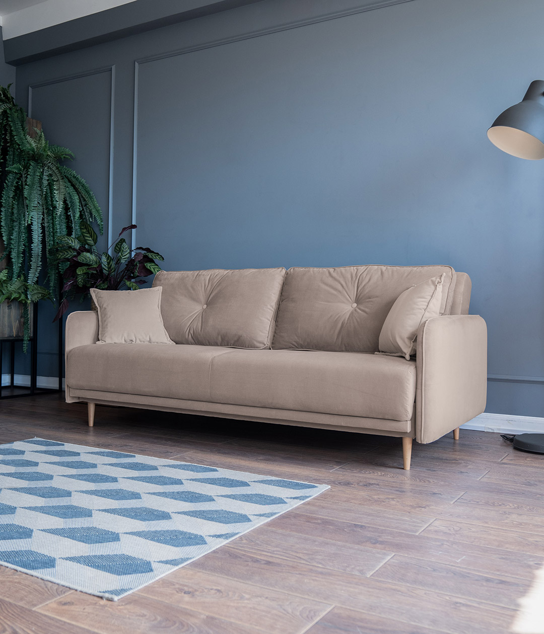 Диван Пирр — это идеальное сочетание стиля и функциональности, создающее комфортное пространство для отдыха. Высокие деревянные ножки и узкие подлокотники, украшенные декоративным кантом, придают ему элегантный и изысканный вид, который станет ярким акцентом в вашем интерьере. Благодаря легкой трансформации в удобное спальное место, диван Пирр не только эстетически привлекателен, но и практичен, что делает его отличным выбором для любого помещения.