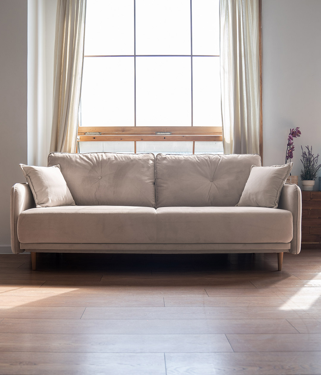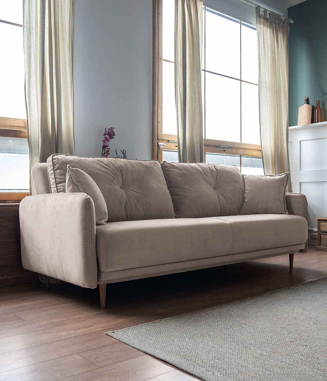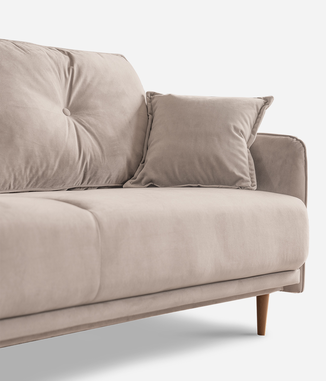 Диван Пирр — это идеальное сочетание стиля и функциональности, создающее комфортное пространство для отдыха. Высокие деревянные ножки и узкие подлокотники, украшенные декоративным кантом, придают ему элегантный и изысканный вид, который станет ярким акцентом в вашем интерьере. Благодаря легкой трансформации в удобное спальное место, диван Пирр не только эстетически привлекателен, но и практичен, что делает его отличным выбором для любого помещения.