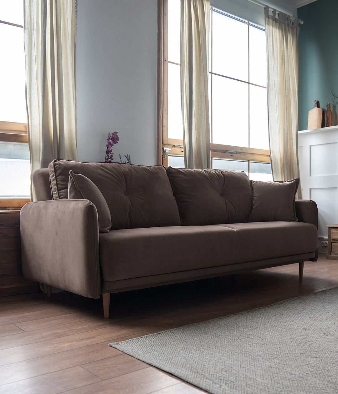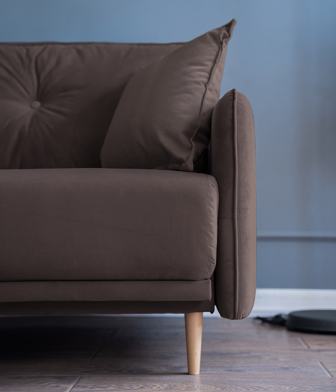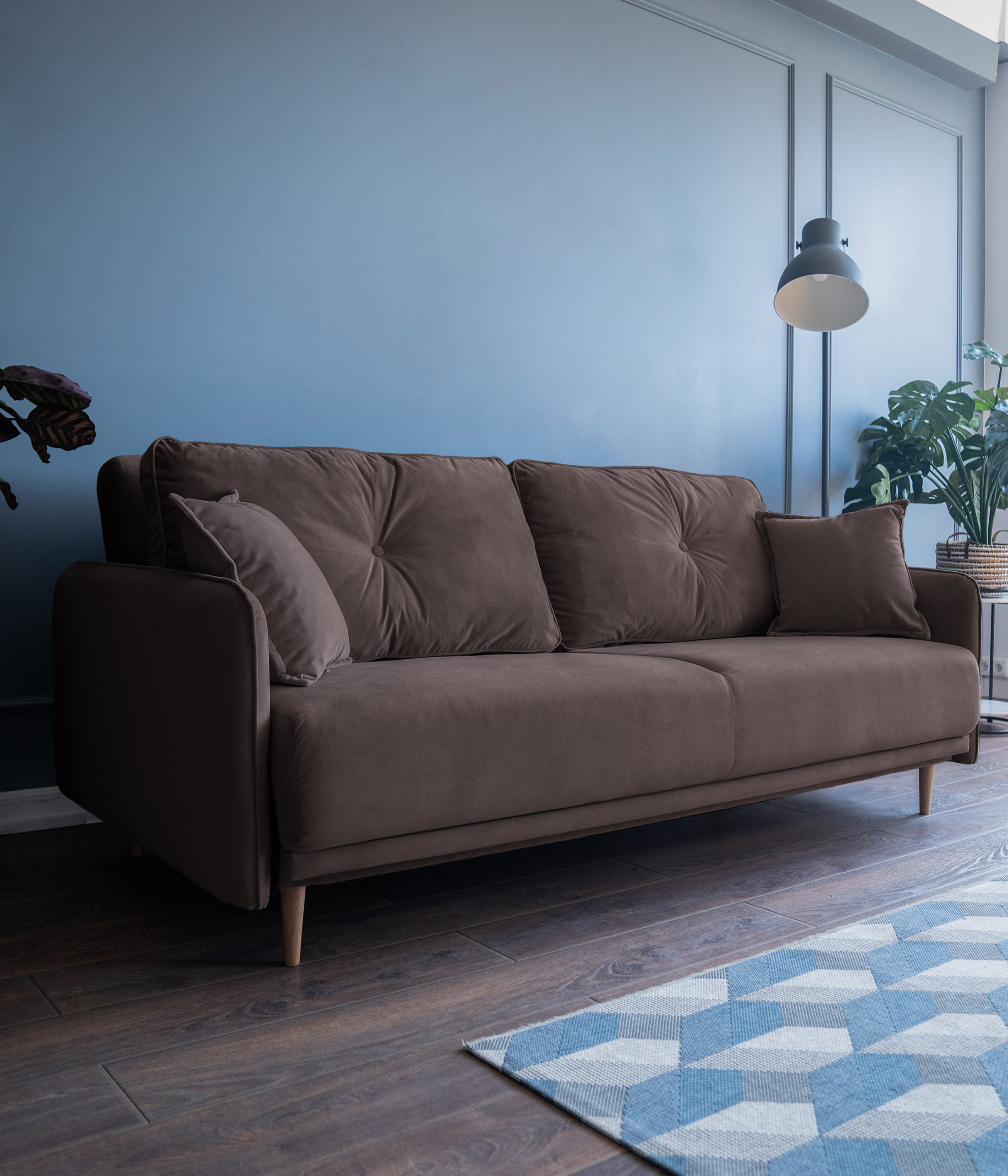 Диван Пирр — это идеальное сочетание стиля и функциональности, создающее комфортное пространство для отдыха. Высокие деревянные ножки и узкие подлокотники, украшенные декоративным кантом, придают ему элегантный и изысканный вид, который станет ярким акцентом в вашем интерьере. Благодаря легкой трансформации в удобное спальное место, диван Пирр не только эстетически привлекателен, но и практичен, что делает его отличным выбором для любого помещения.