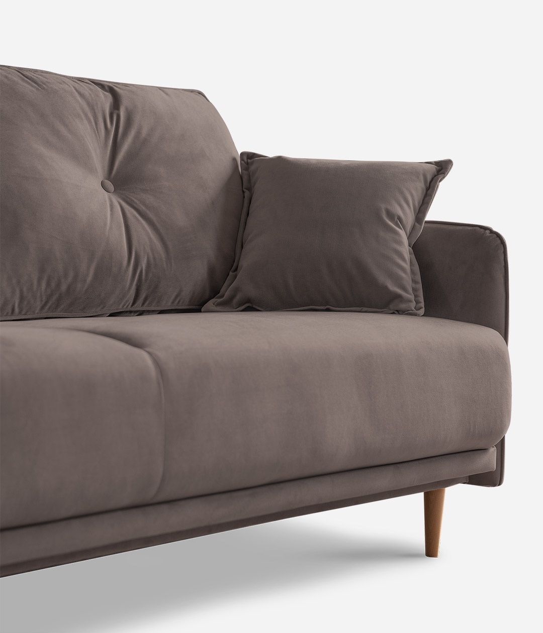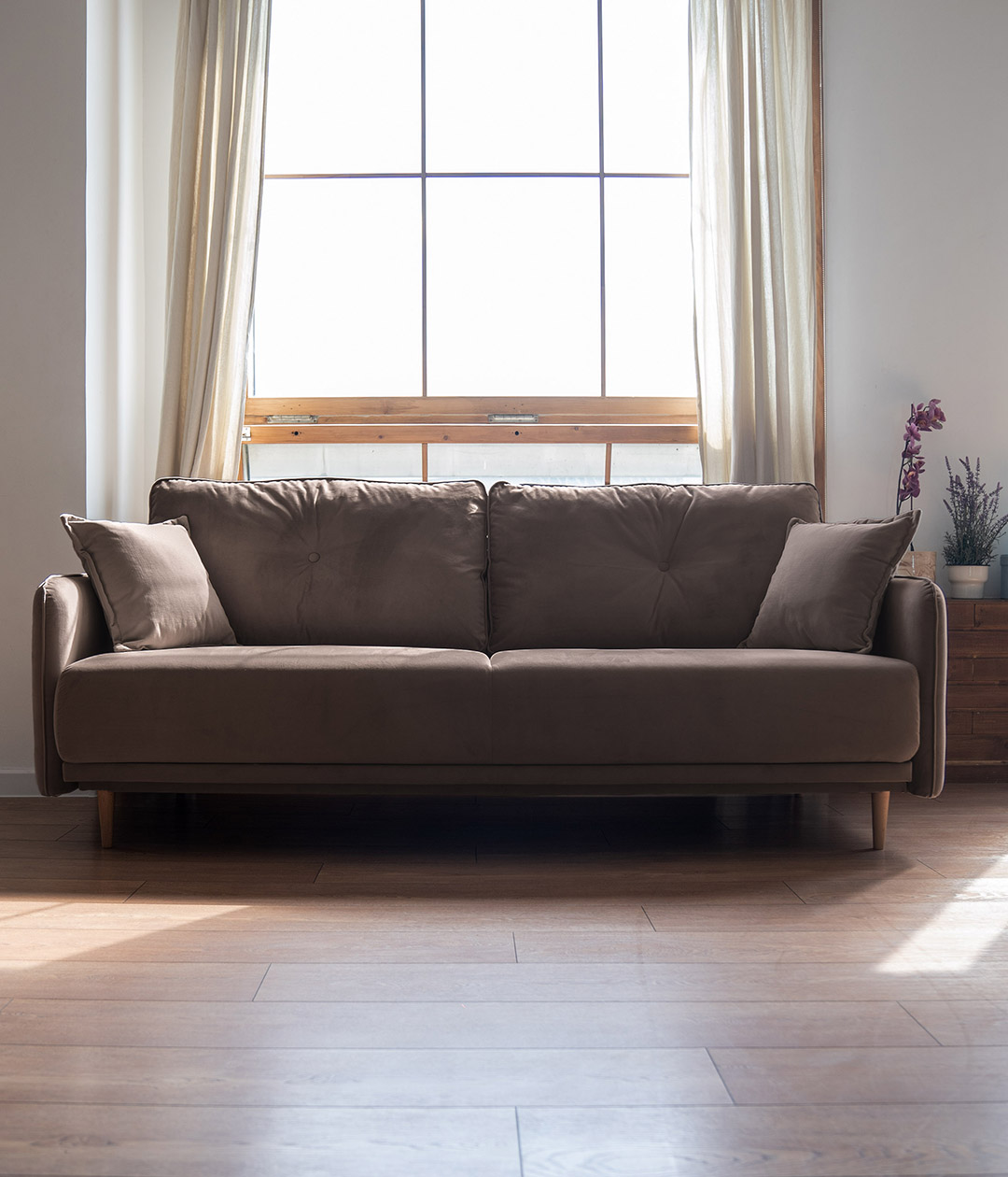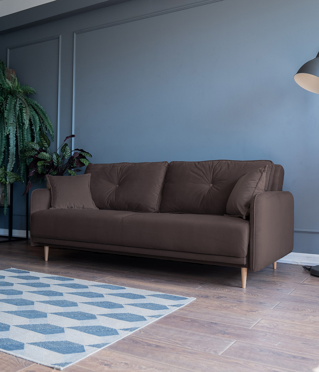 Диван Пирр — это идеальное сочетание стиля и функциональности, создающее комфортное пространство для отдыха. Высокие деревянные ножки и узкие подлокотники, украшенные декоративным кантом, придают ему элегантный и изысканный вид, который станет ярким акцентом в вашем интерьере. Благодаря легкой трансформации в удобное спальное место, диван Пирр не только эстетически привлекателен, но и практичен, что делает его отличным выбором для любого помещения.